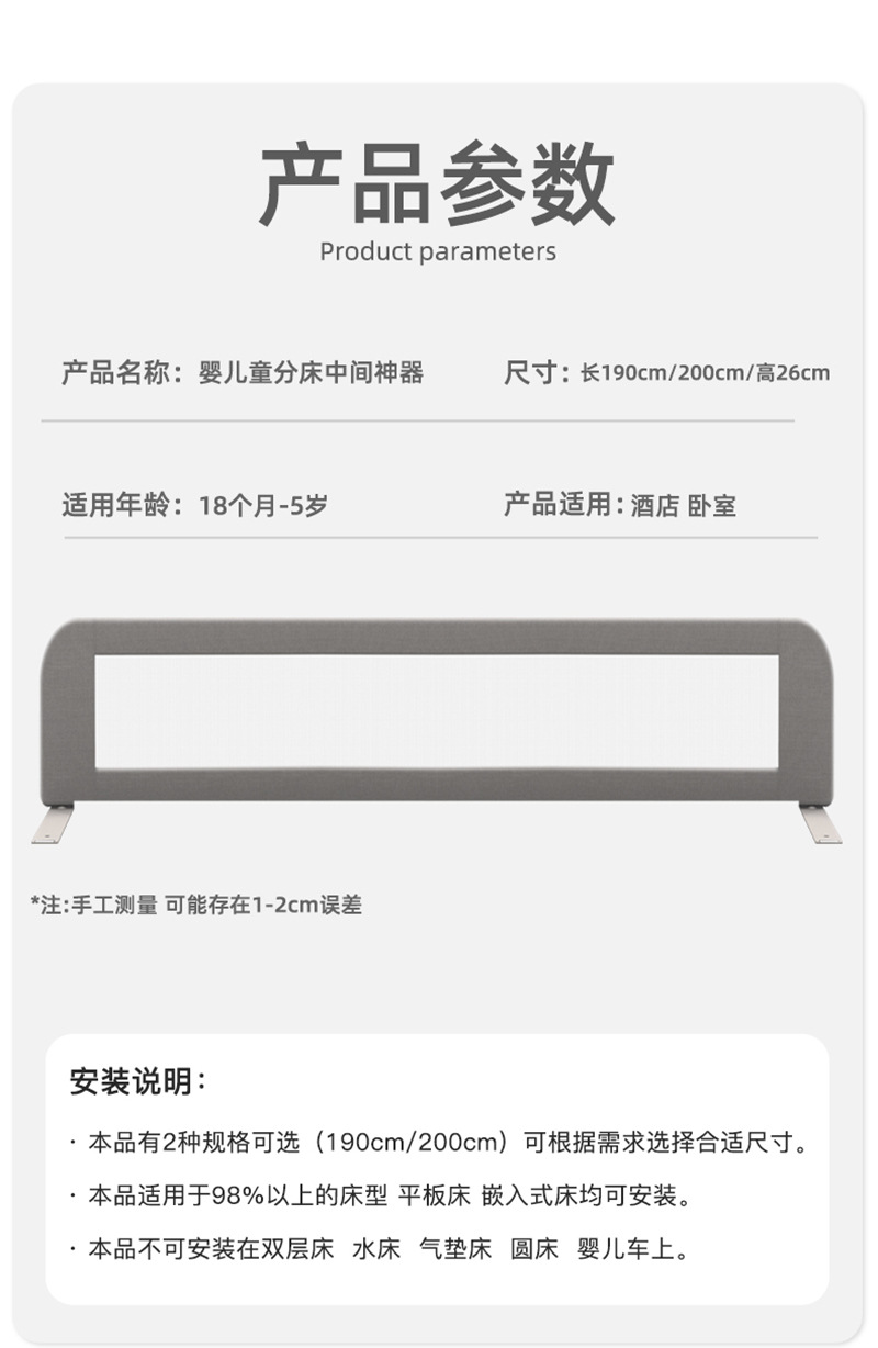• 글레이셔 그레이 [보호 격리 1.9m + 조절 가능 + 탈부착 및 세탁 가능한 천 커버 + 무료 고정 스트랩]