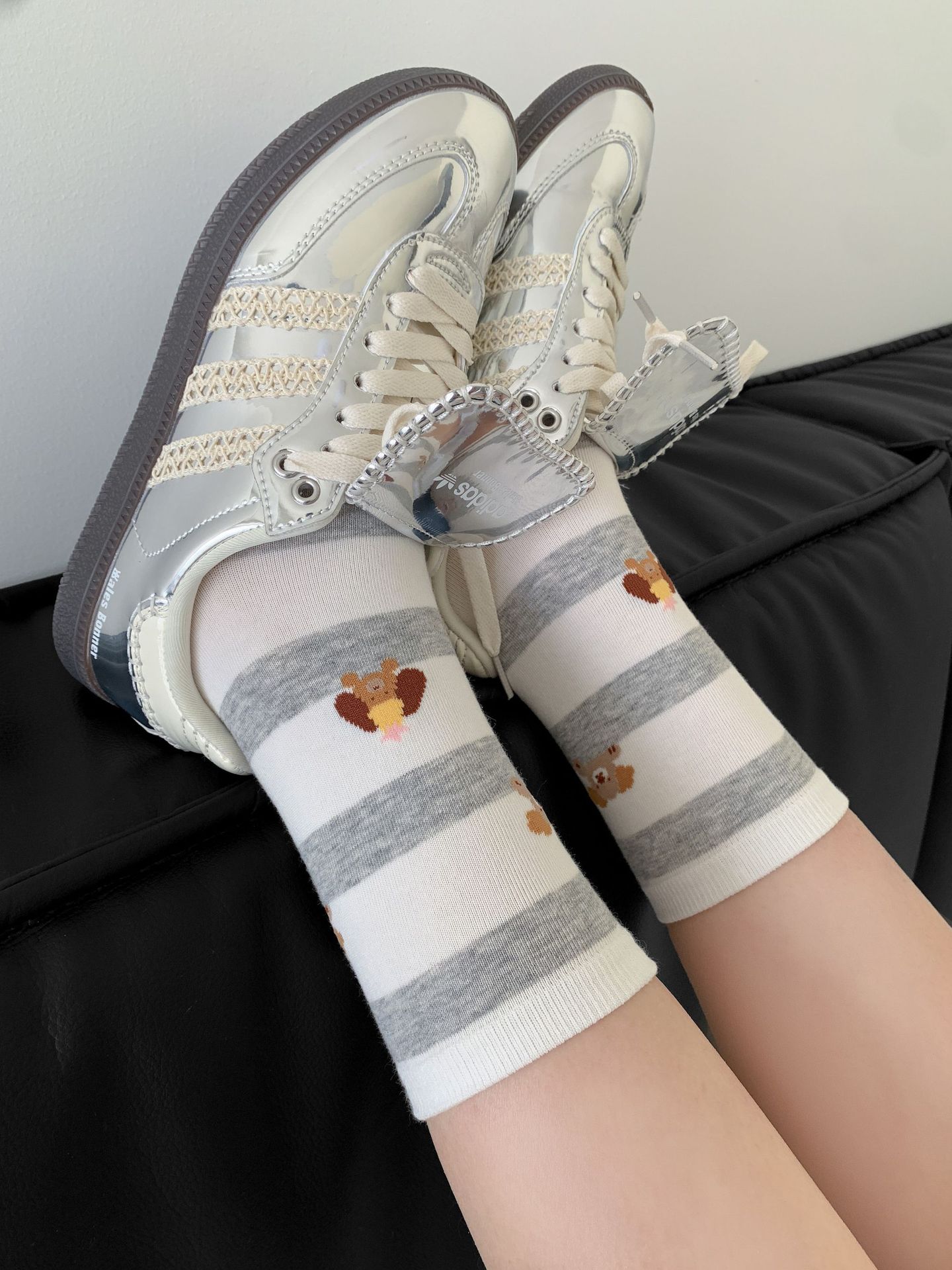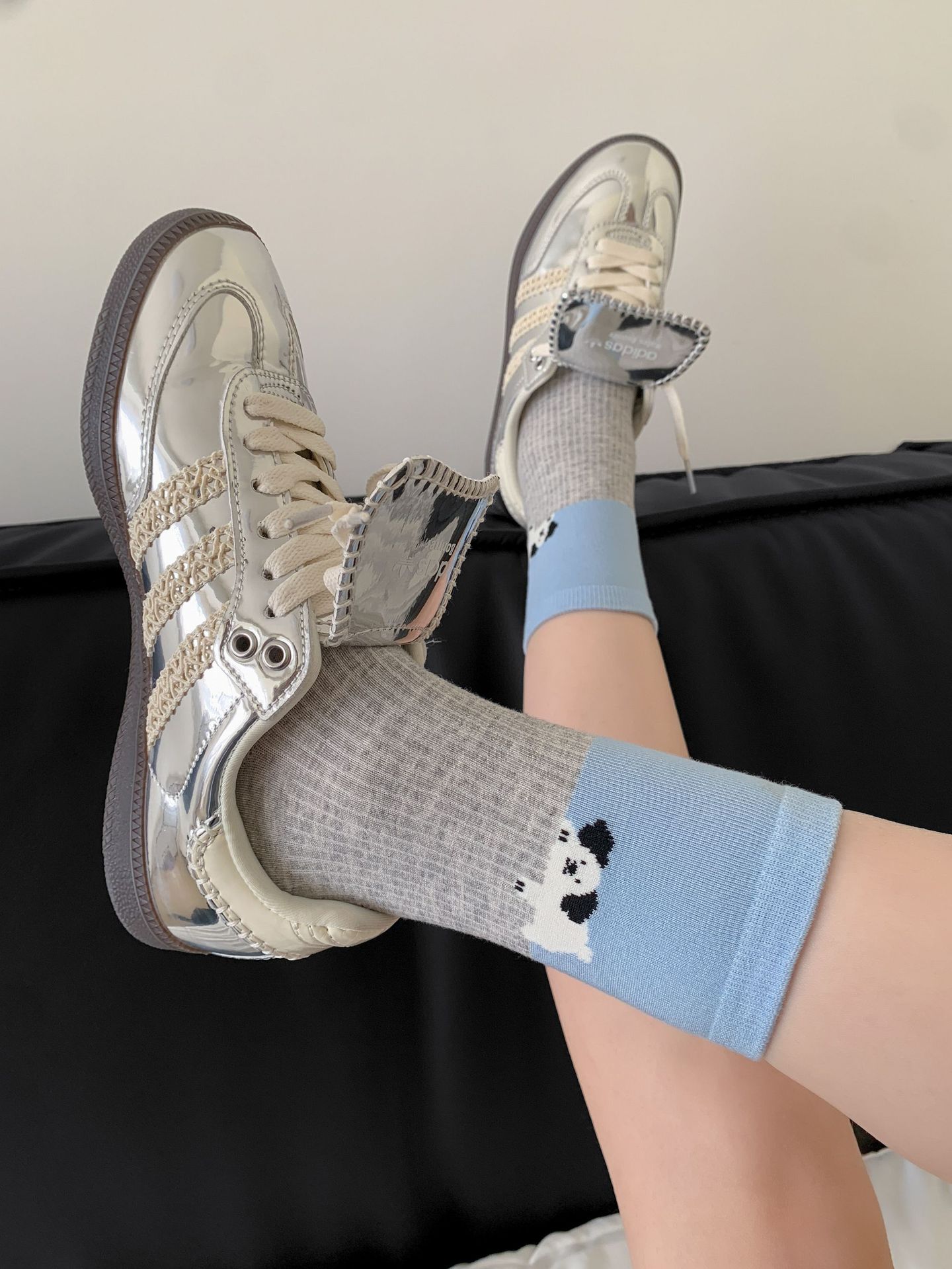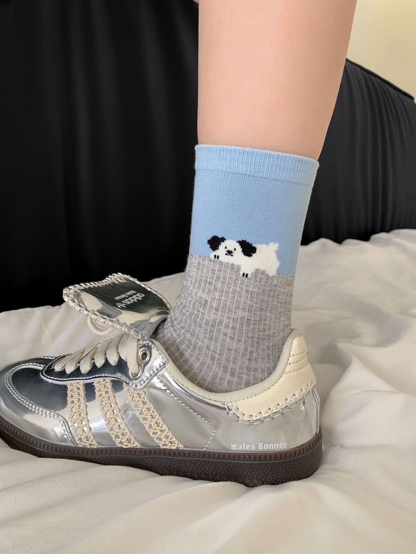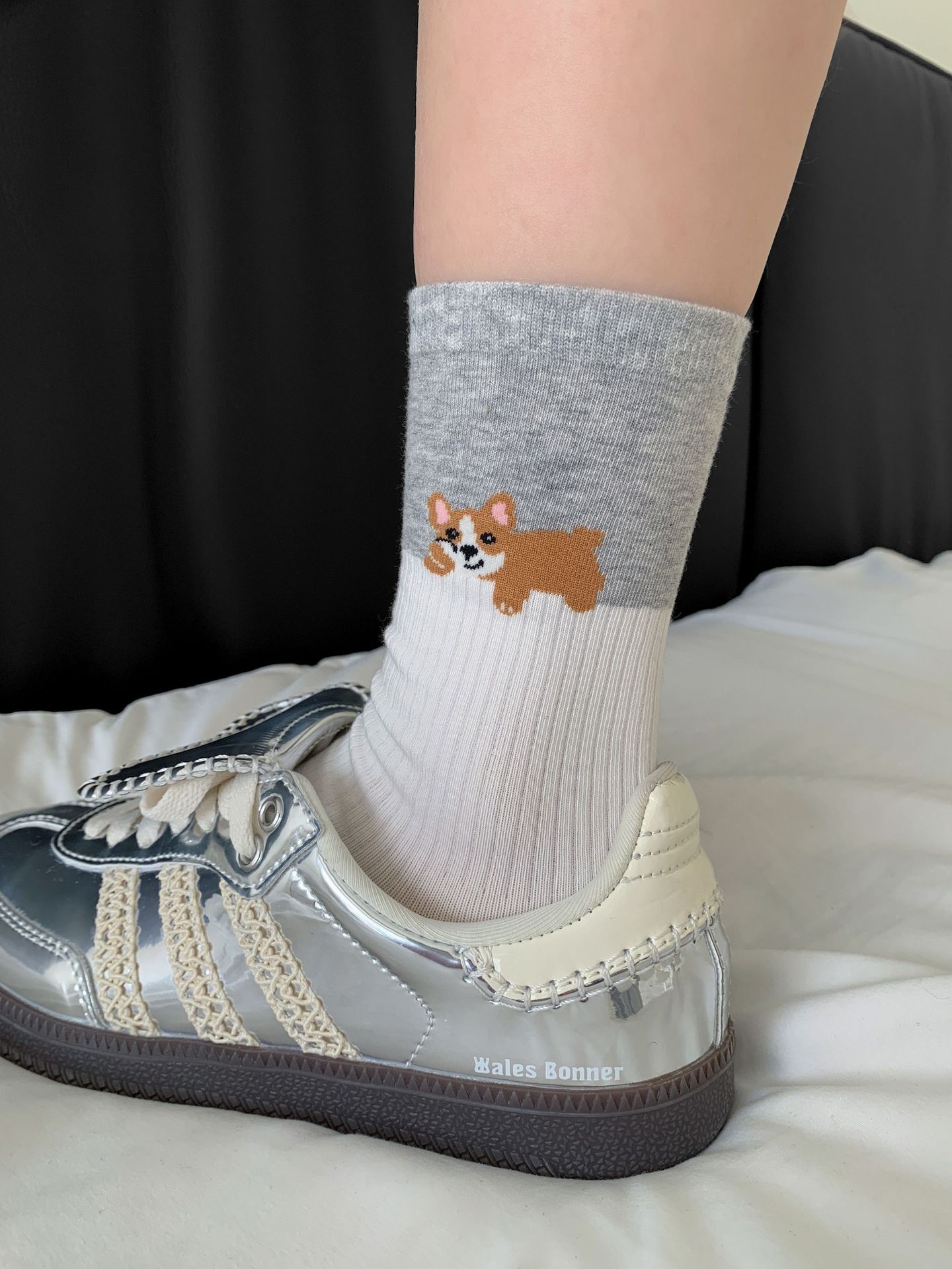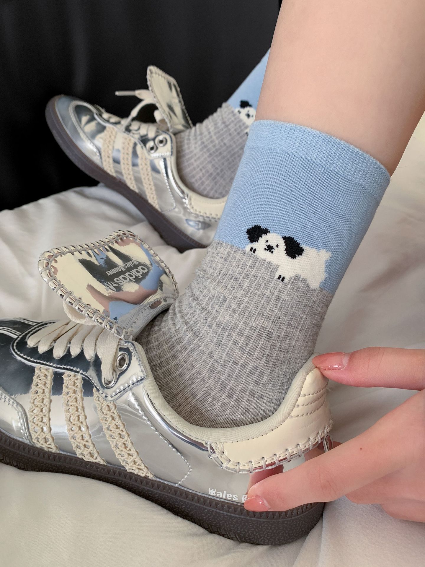 회색 양말 여성의 뼈없는 양말 만화 귀여운 색상 일치하는 강아지 인 색상 일치 줄무늬 강아지 대학 스타일 순수한면 양말스토어 가기