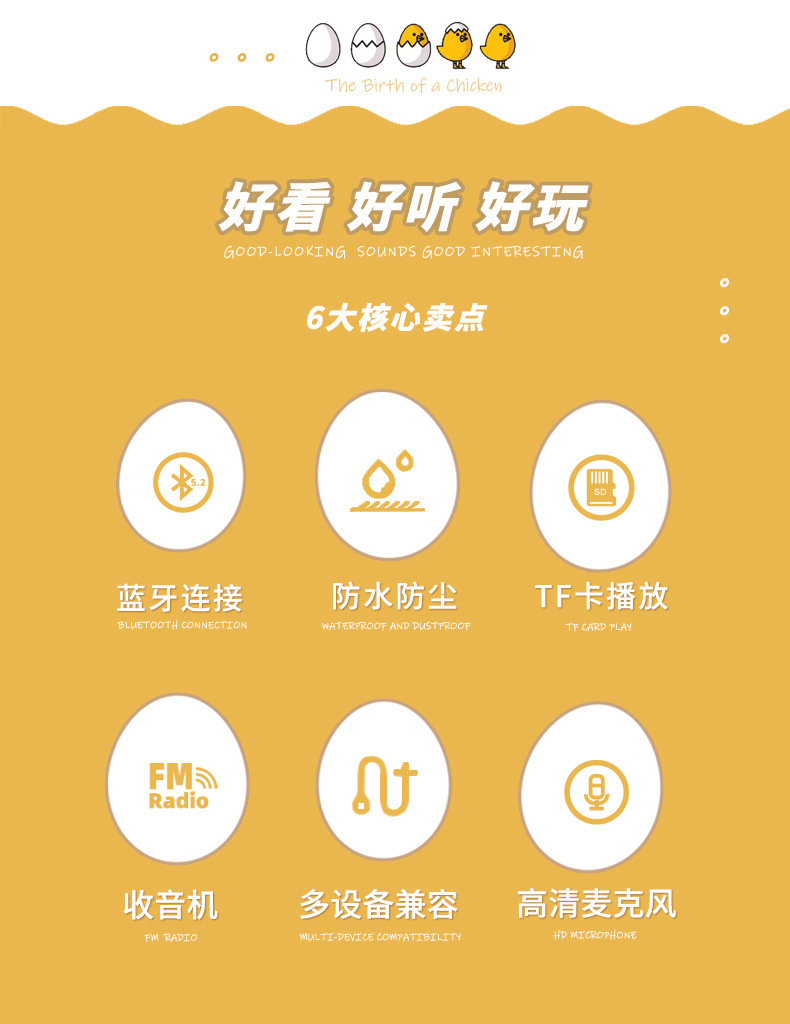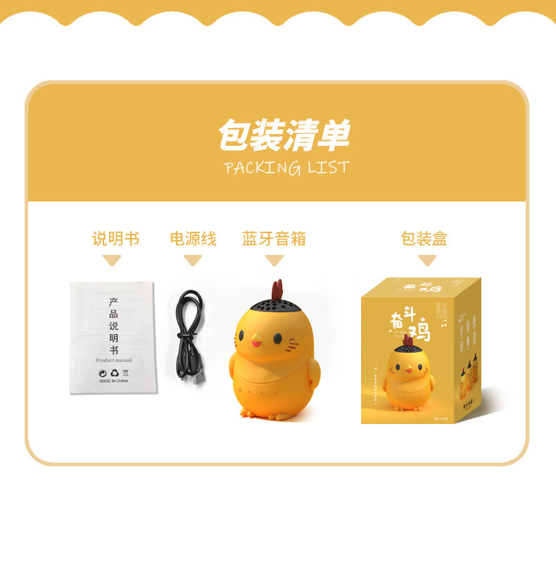 조수 놀이 손으로 만든 투쟁 치킨 블루투스 스피커 오디오 선물 작은 스피커 만화 휴대용 방수 어린이 국경스토어 가기