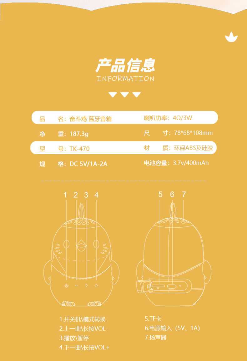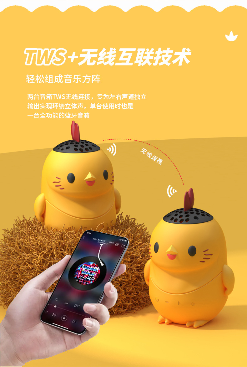 조수 놀이 손으로 만든 투쟁 치킨 블루투스 스피커 오디오 선물 작은 스피커 만화 휴대용 방수 어린이 국경