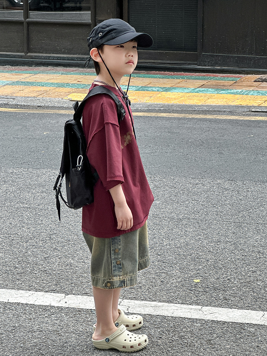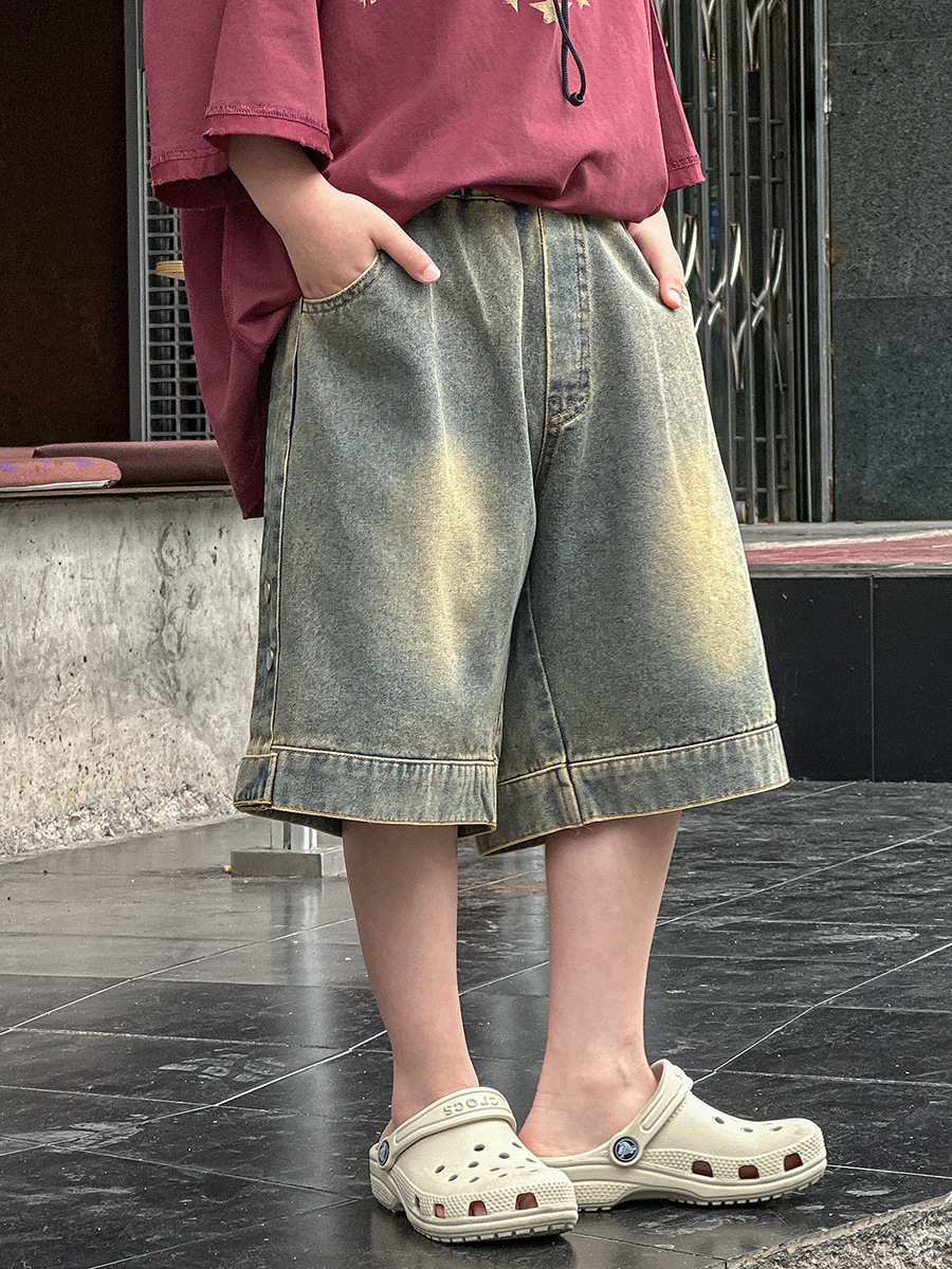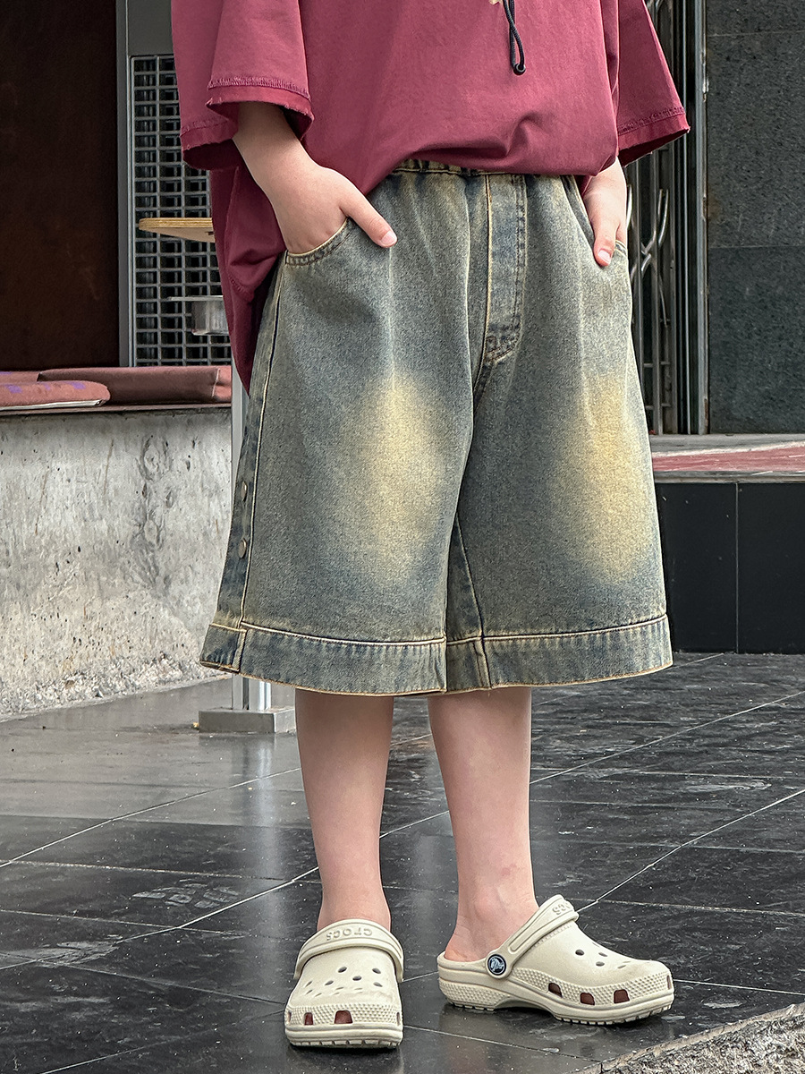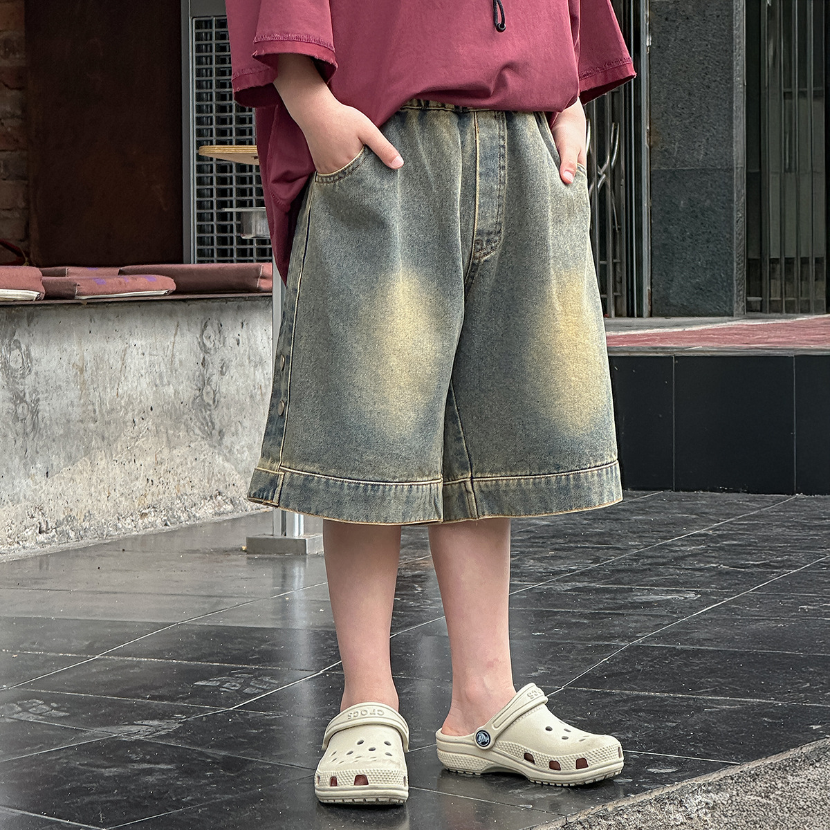 여름 소년 반바지 어린이 한국어 버전 2025 새로운 복고풍 데님 5부 바지 디자인 아동 의류 느슨한 여름 옷스토어 가기