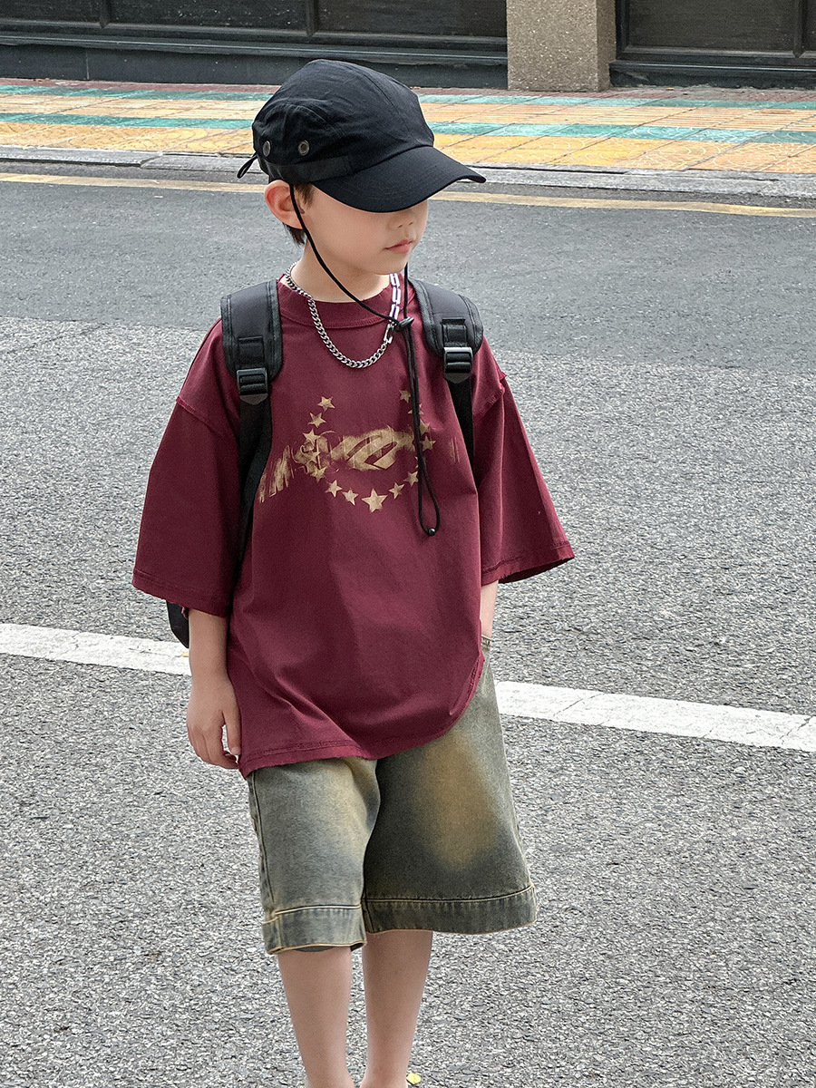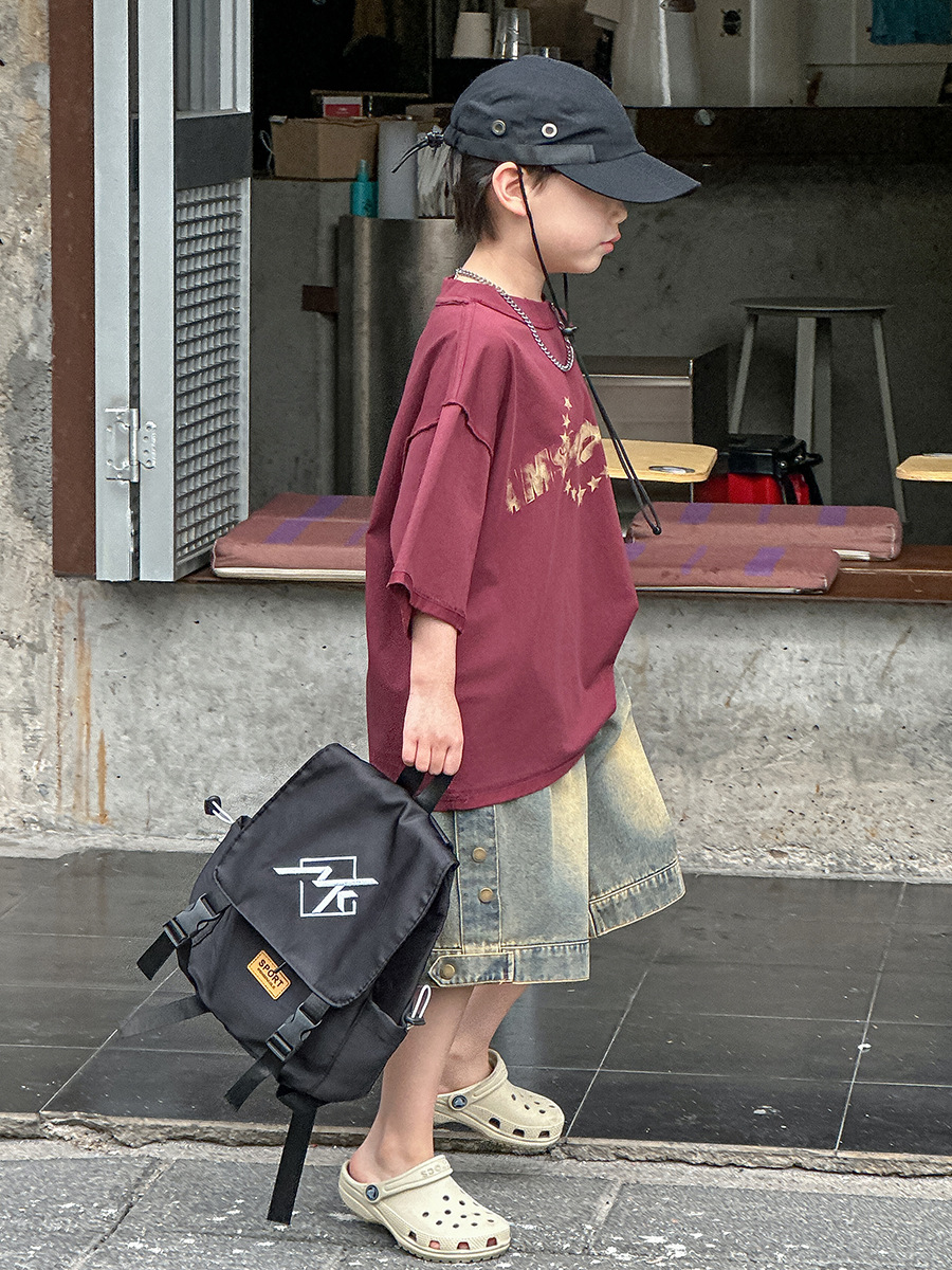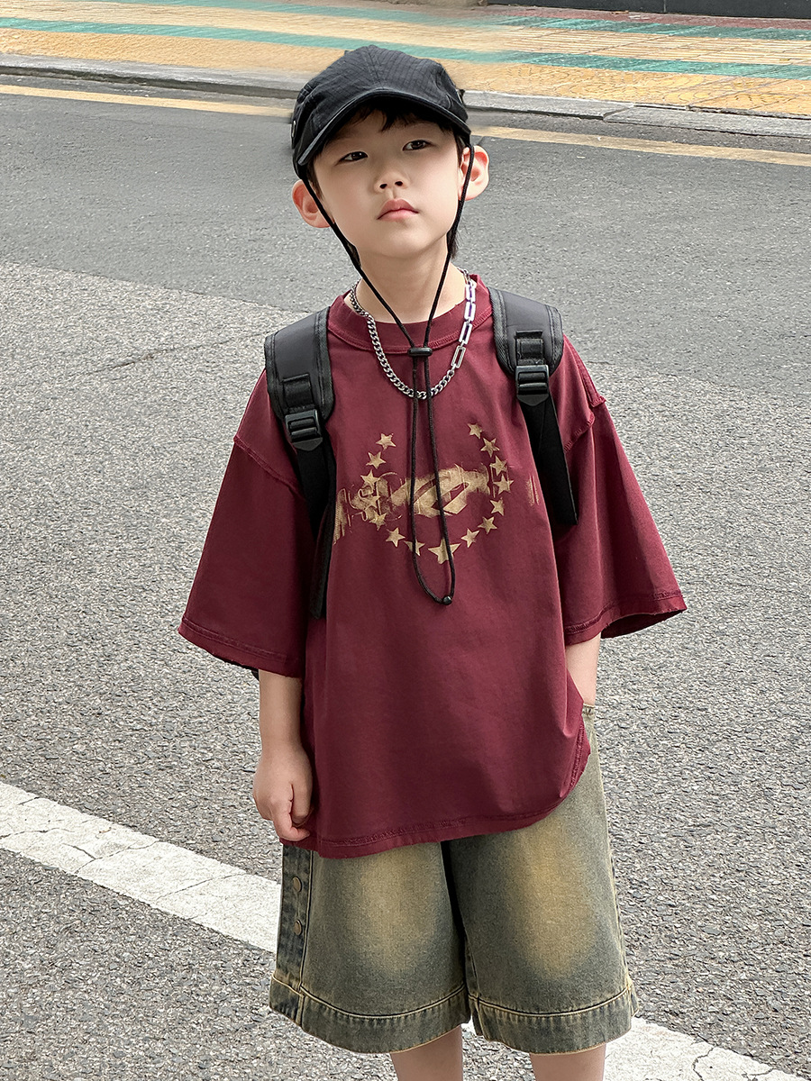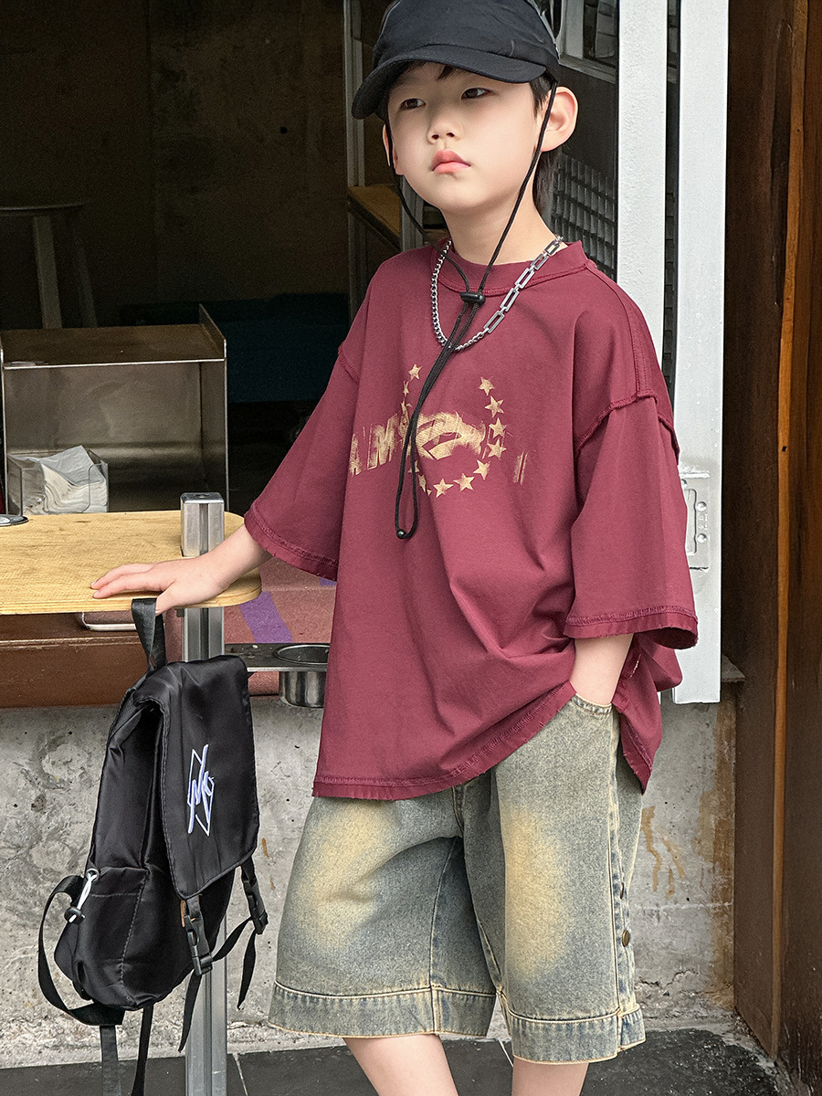 여름 소년 반바지 어린이 한국어 버전 2025 새로운 복고풍 데님 5부 바지 디자인 아동 의류 느슨한 여름 옷스토어 가기