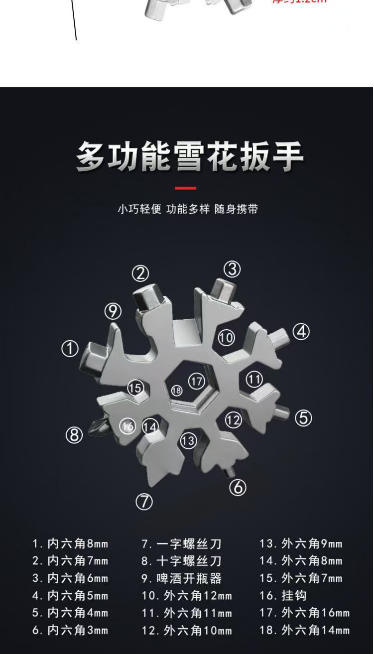다기능 눈송이 렌치 홈 도구 휴대용 작은 병따개 다기능 18 in 1 눈송이 렌치스토어 가기
