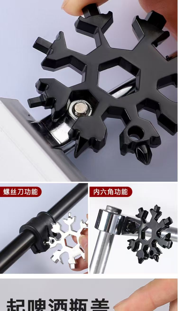 다기능 눈송이 렌치 홈 도구 휴대용 작은 병따개 다기능 18 in 1 눈송이 렌치