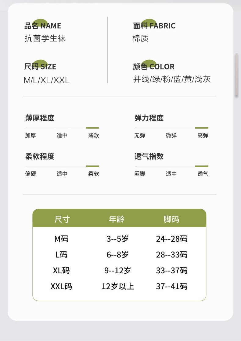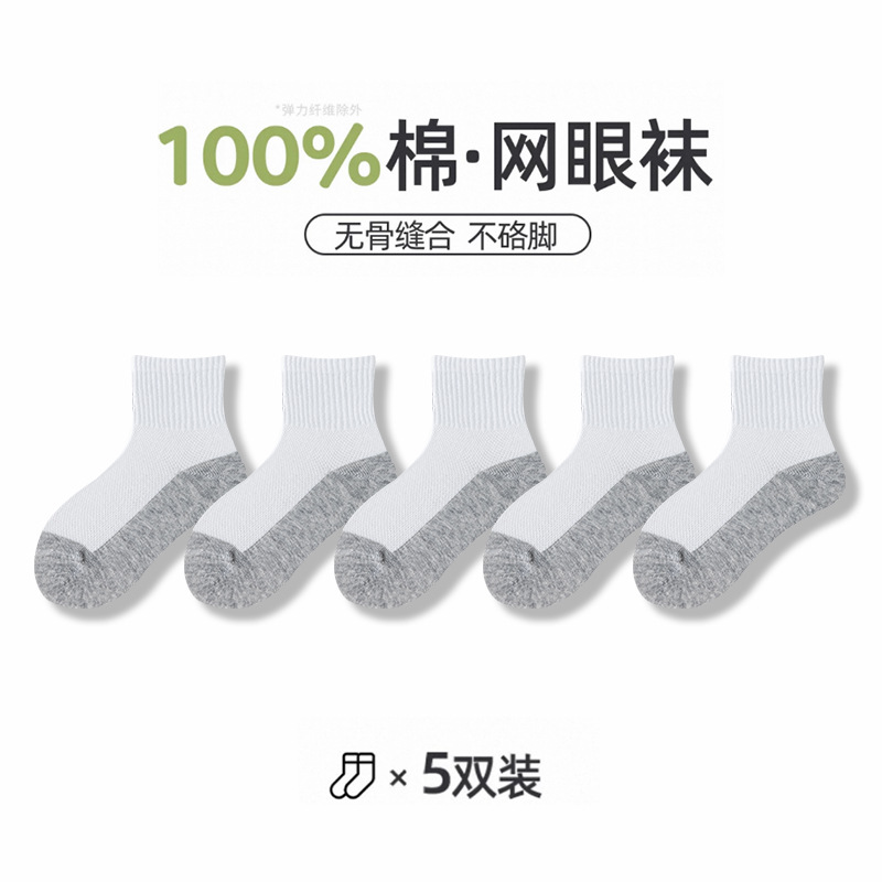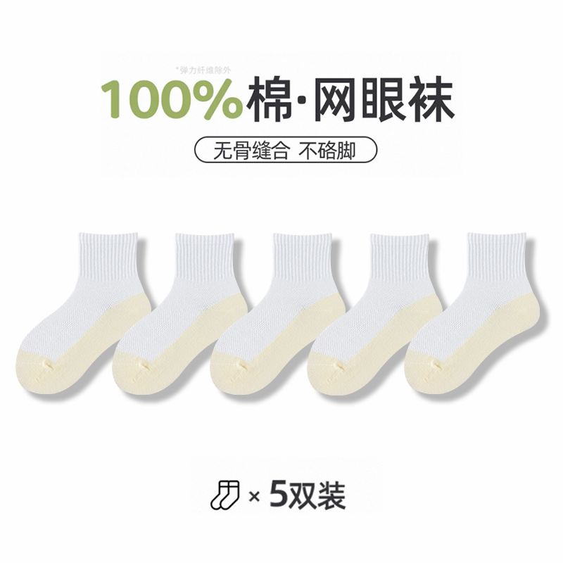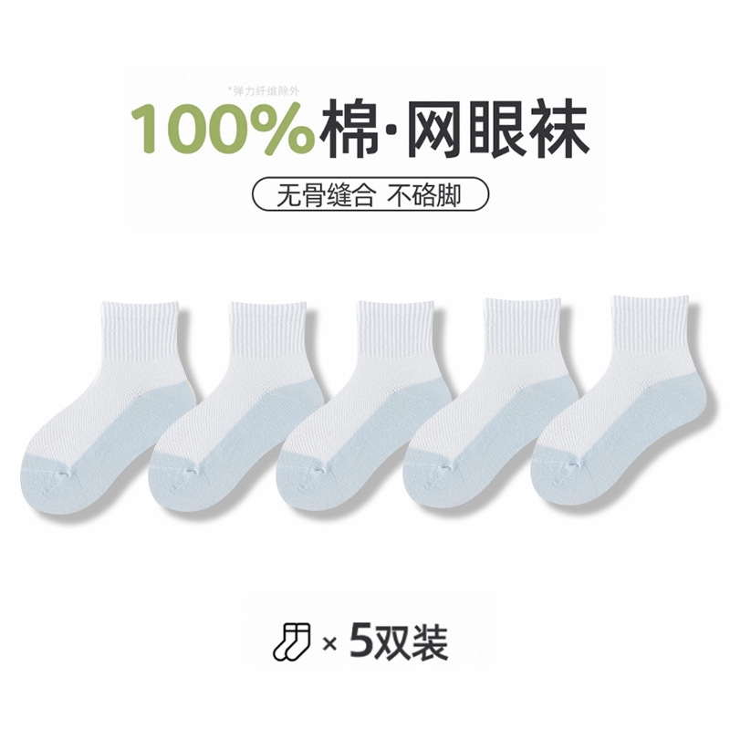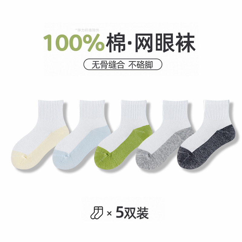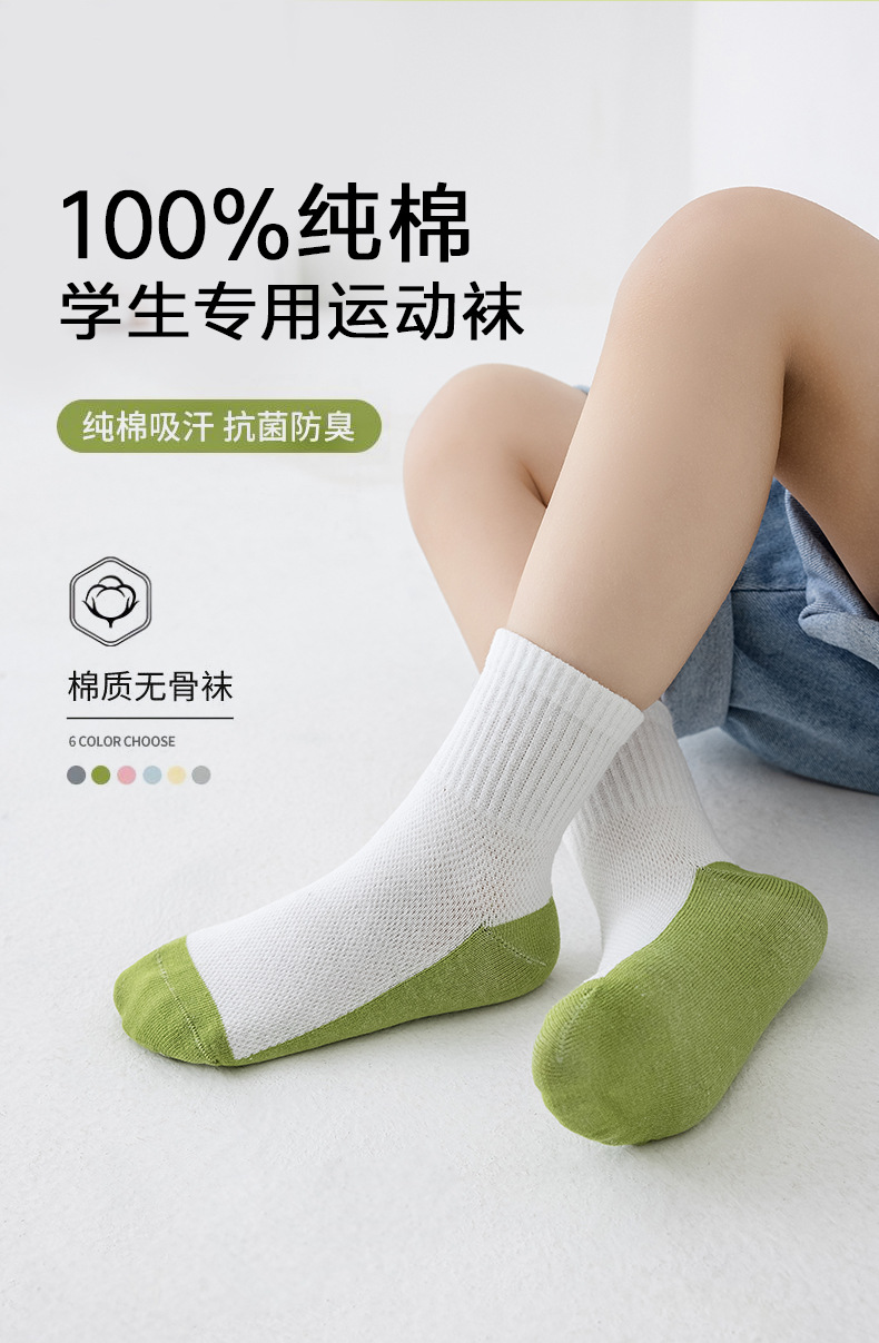 어린이 양말 여름 메쉬 얇은 중간 튜브 양말 순수 면 항균 양말 소년 소녀 중 큰 어린이 학생