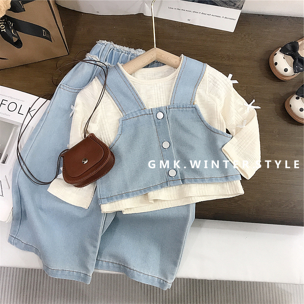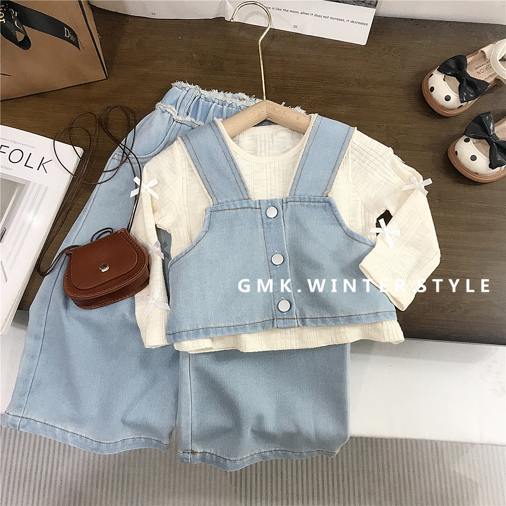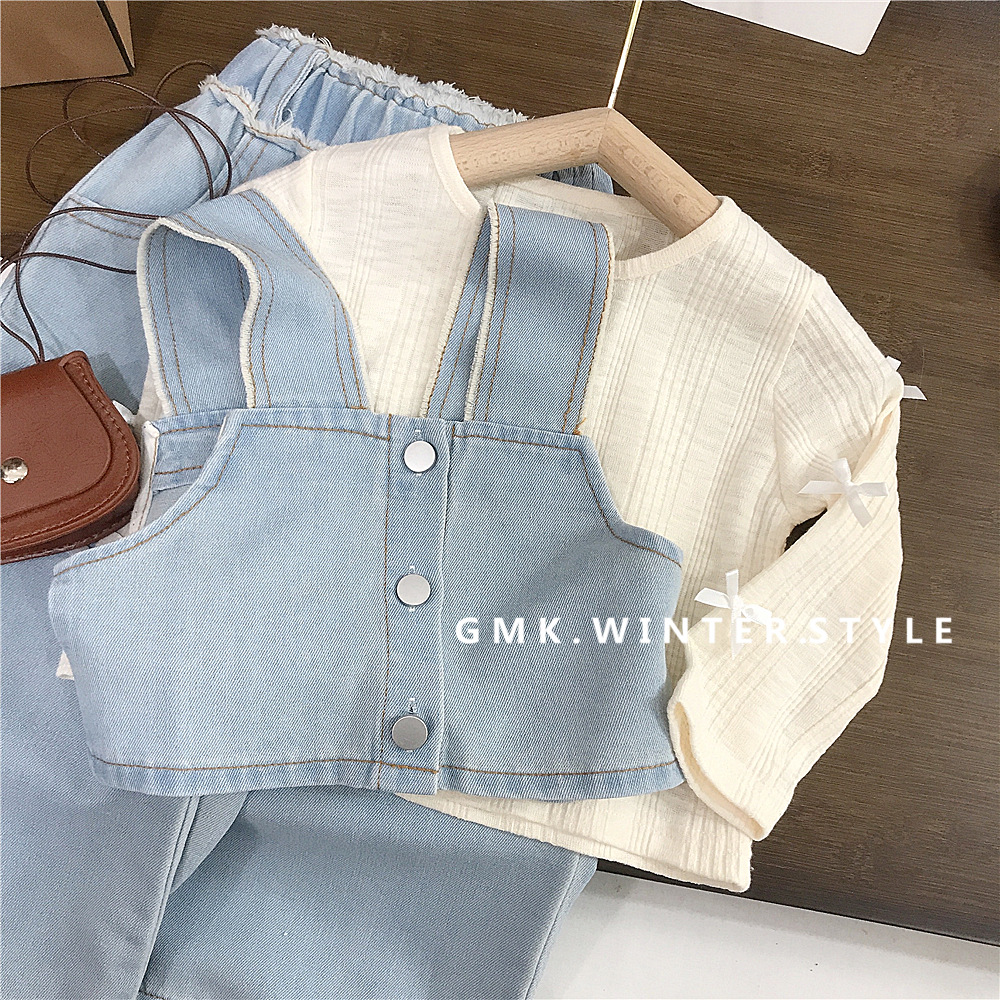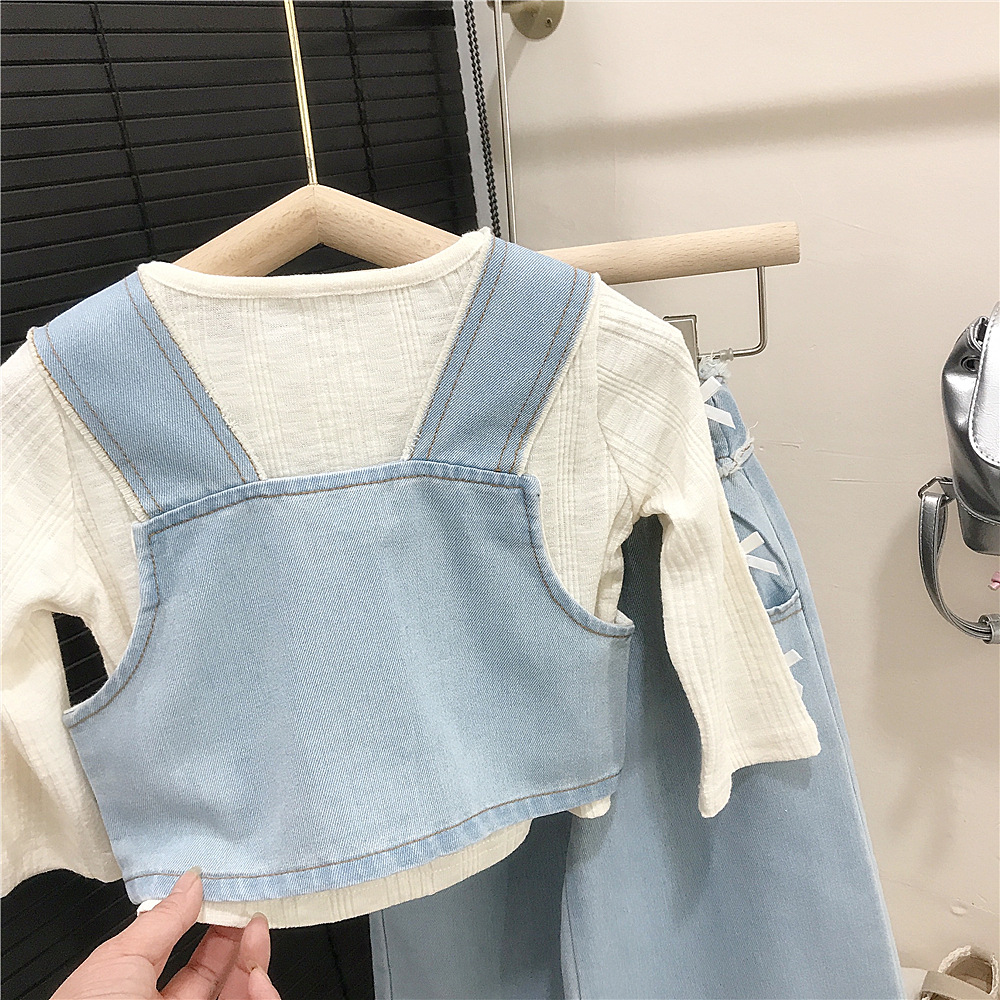소녀의 봄 데님 3 조각 새로운 봄과 가을 서양식 베이비 베이스 셔츠 어린이 청바지 세트 대외 무역스토어 가기