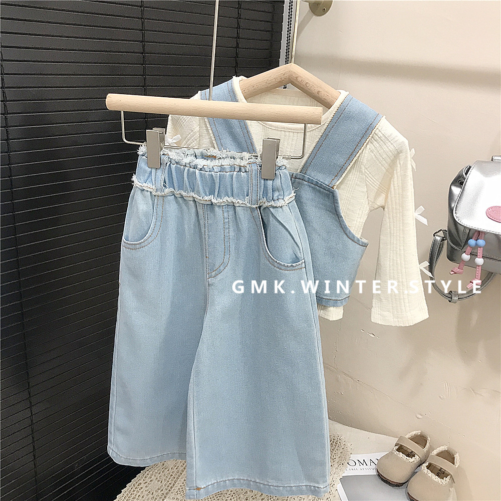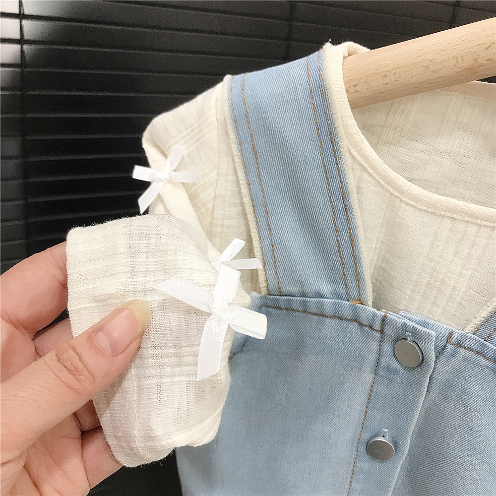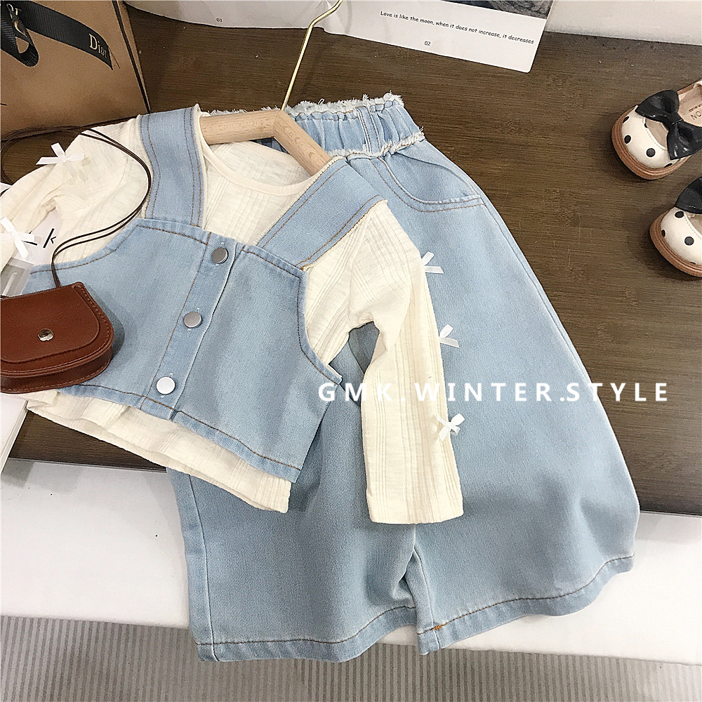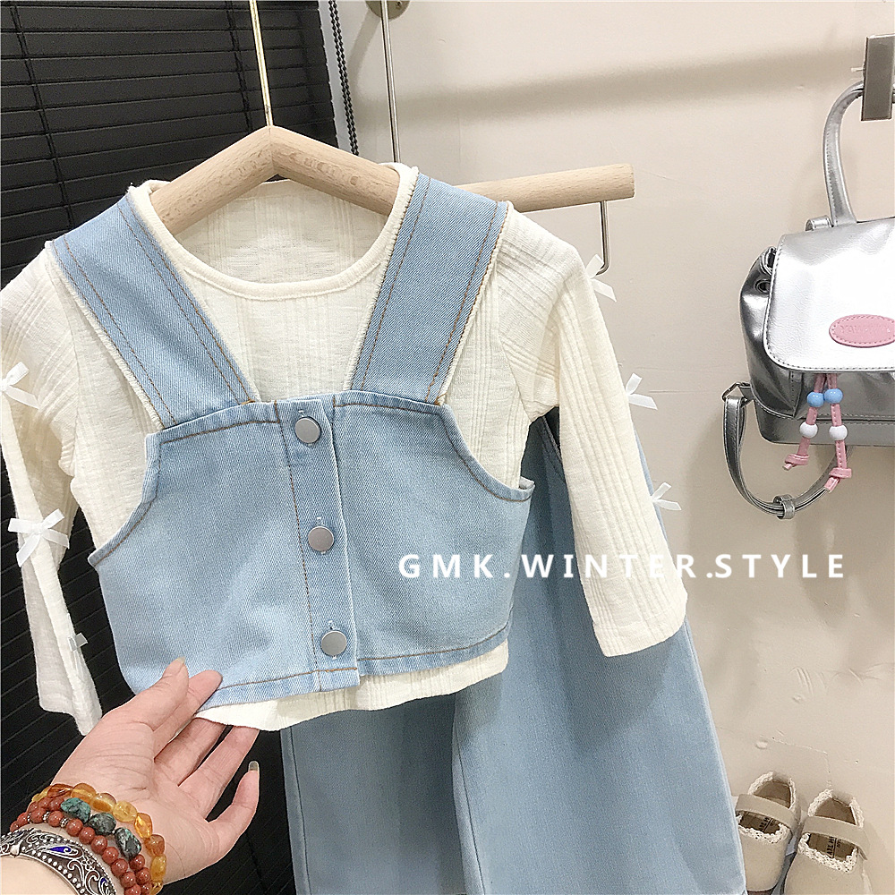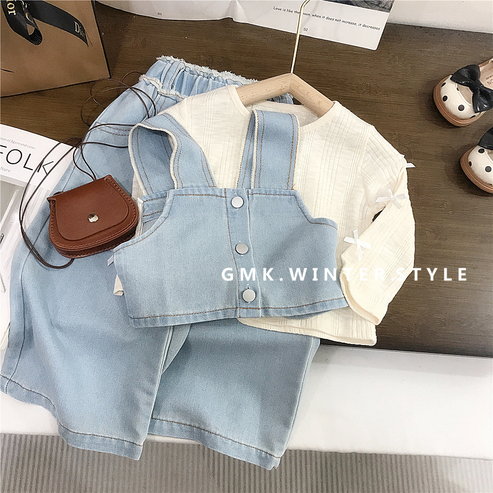 소녀의 봄 데님 3 조각 새로운 봄과 가을 서양식 베이비 베이스 셔츠 어린이 청바지 세트 대외 무역스토어 가기