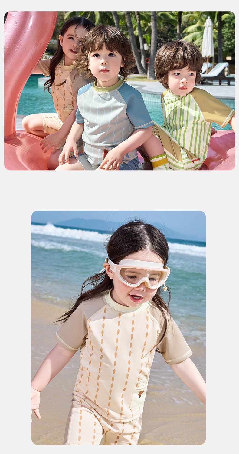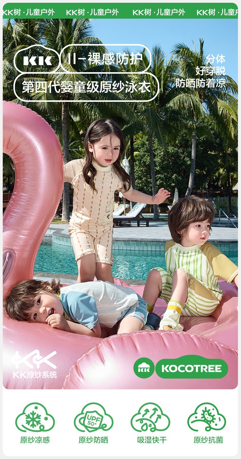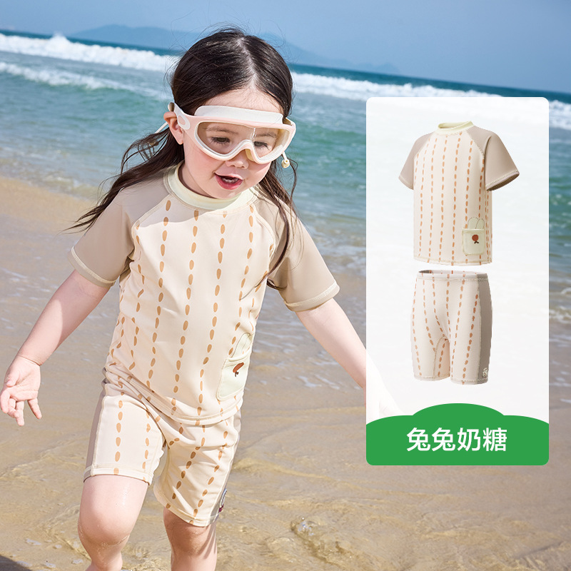 KK 트리 아기 수영복 분할 어린이 수영복 소년과 소녀 어린이 짧은 소매 여름 해변 선 스크린 온천