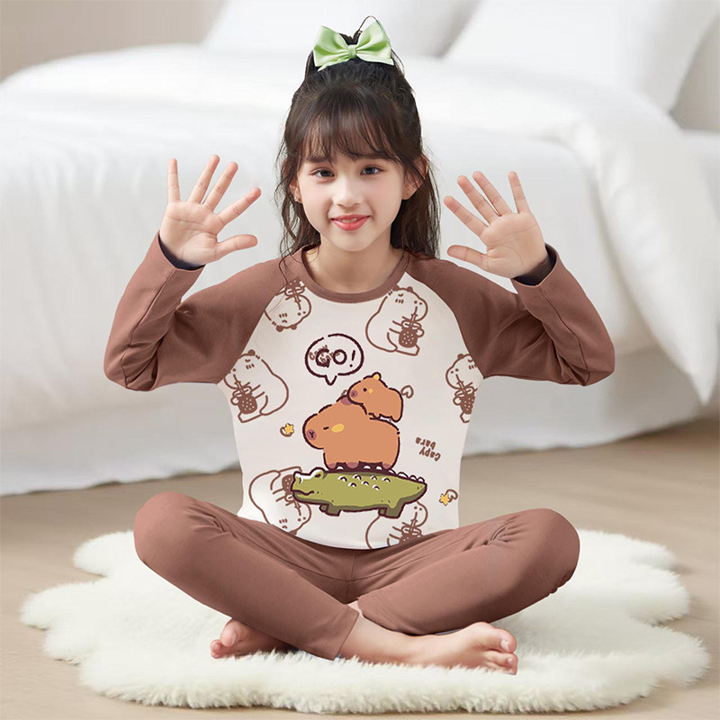 여아용 가을 겨울 독일산 벨벳 보온 내의 홈웨어 귀여운 만화 캐릭터 가을옷 가을바지