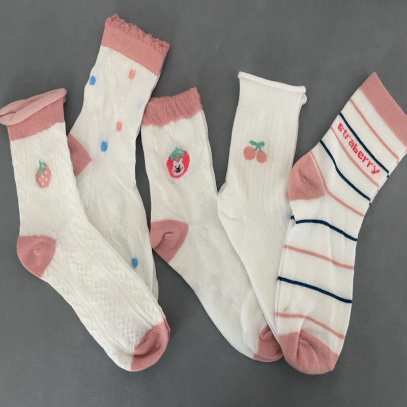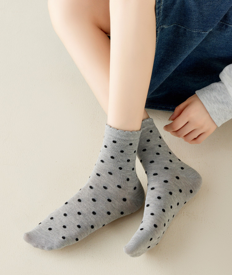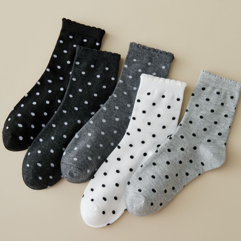 레이스 양말 어린이 스택 양말 봄과 가을 얇은 올매치 한국식 일본식 귀여운 작은 점 우드 이어 여성용 중장 양말