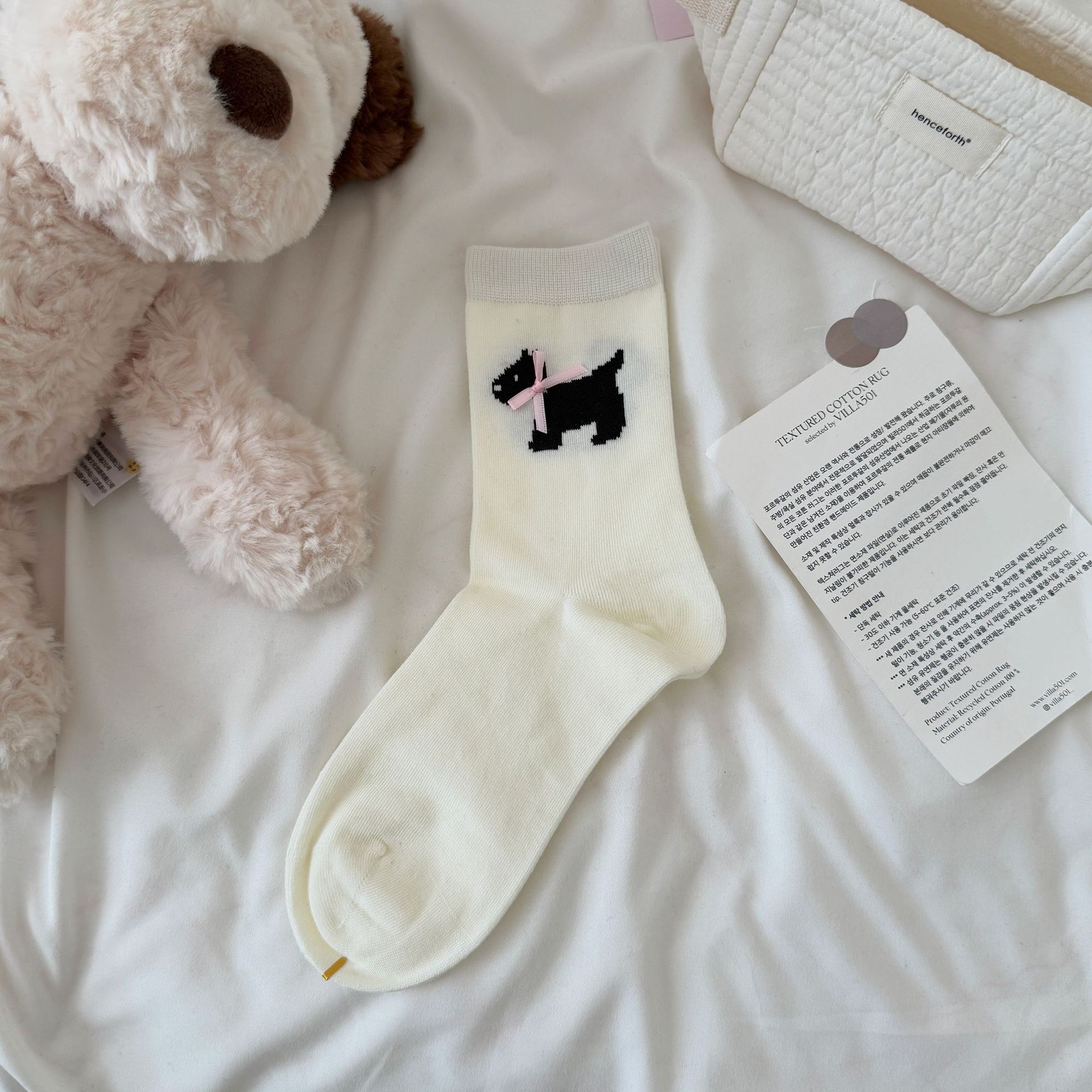 봄과 여름 뼈없는 만화 강아지 더미 양말 활 액세서리 중간 튜브 소녀 귀여운 한국어 버전 ins 빗질면 양말