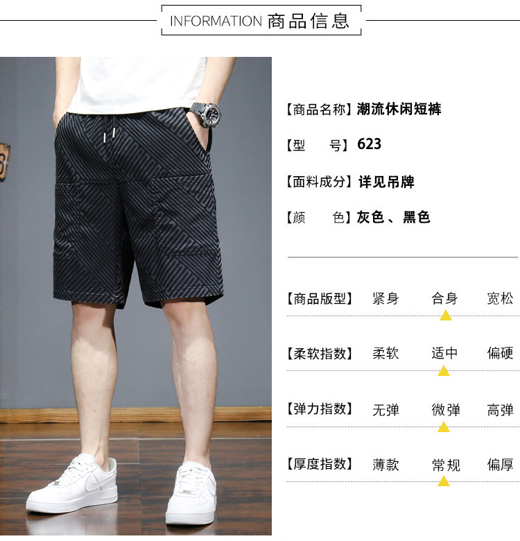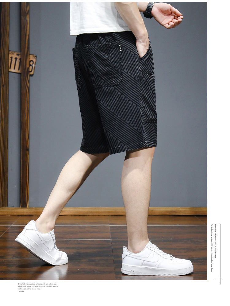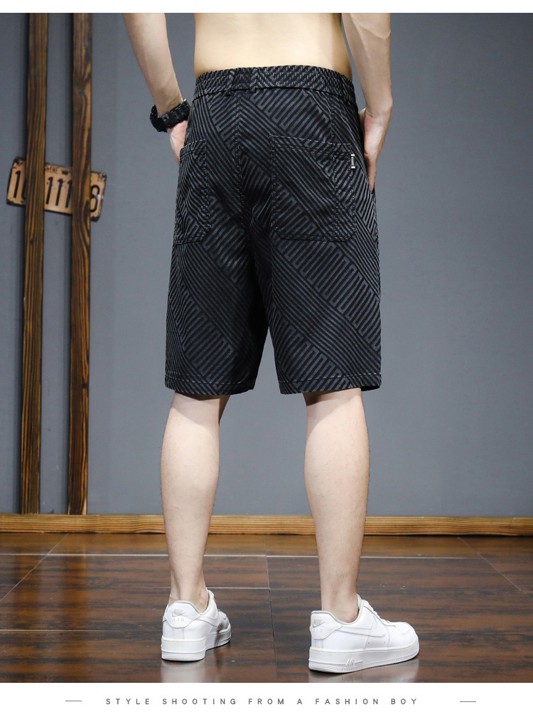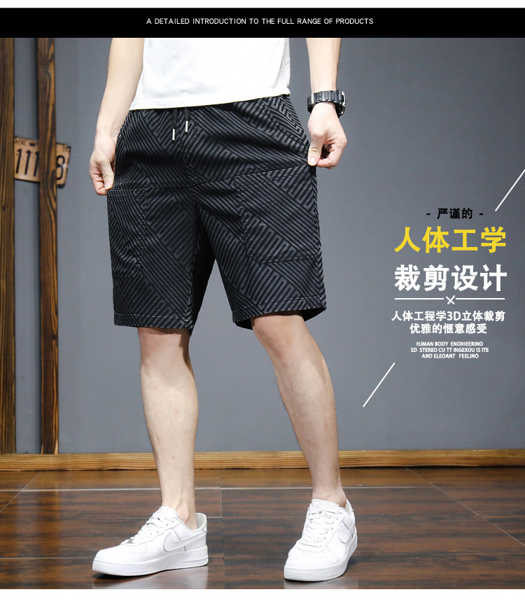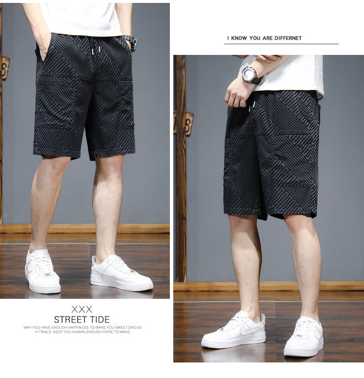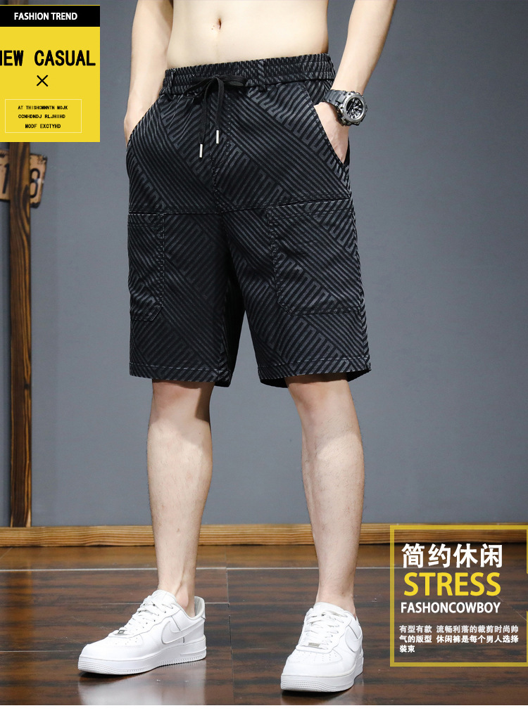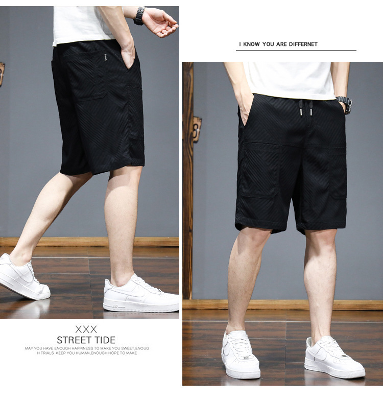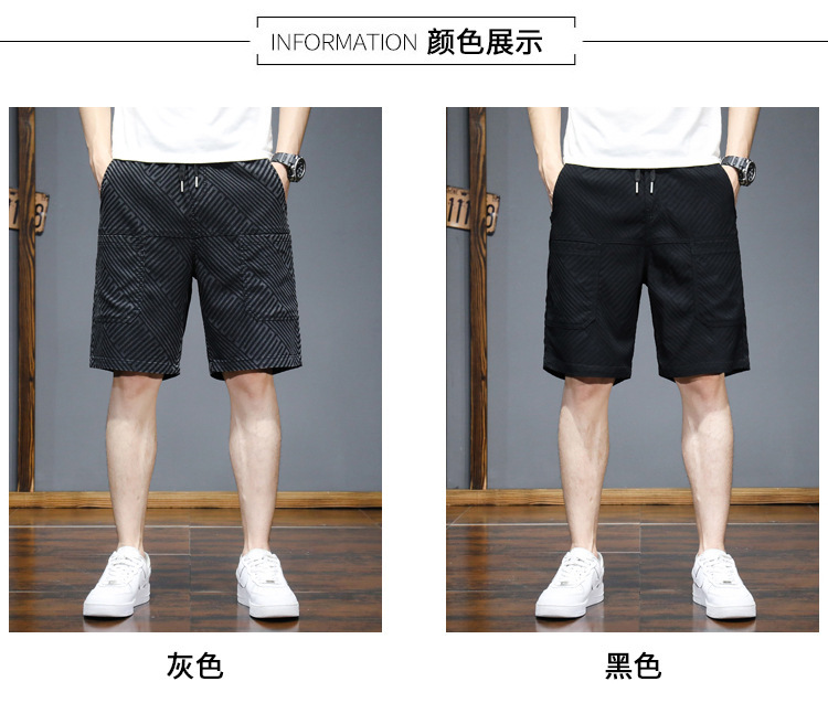여름 얇은 남자 바지 반바지 캐주얼 바지 2025 여름 새 폭발 TikTok High Elastic Jacquard 6 포켓 바지스토어 가기