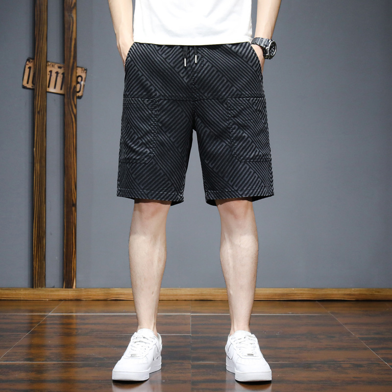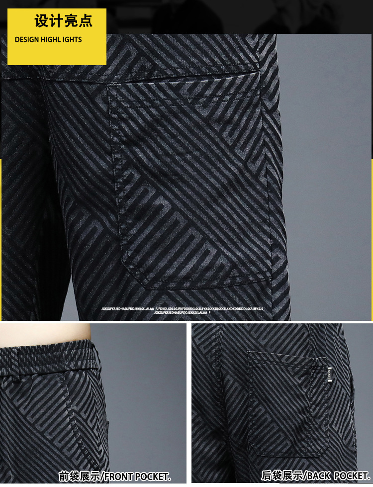 여름 얇은 남자 바지 반바지 캐주얼 바지 2025 여름 새 폭발 TikTok High Elastic Jacquard 6 포켓 바지