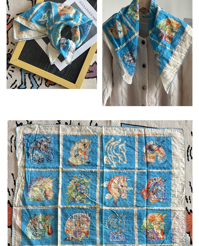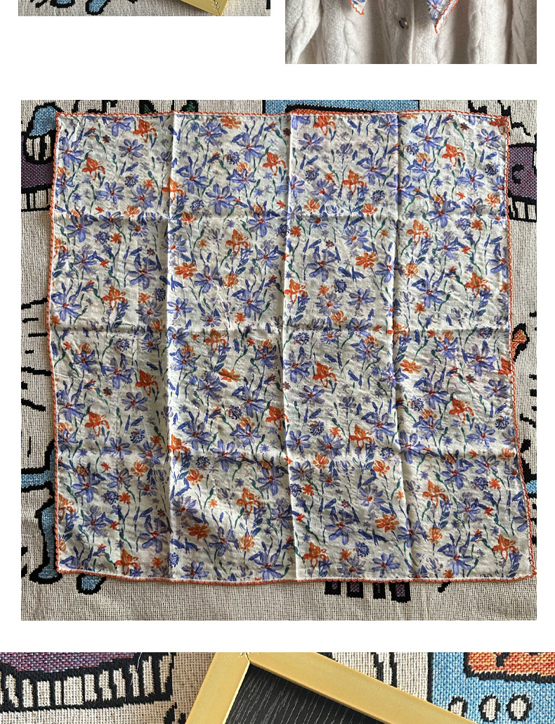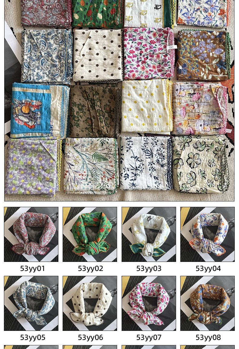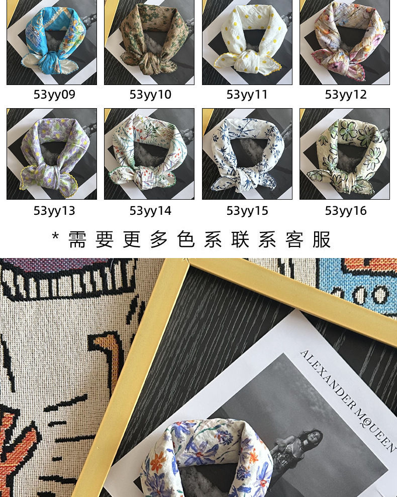 면 삼각 스카프, 실크 스카프, 한국식 작은 스카프, 패셔너블한 넥 쉐이드 숄, 다용도 터번, 롤업 엣지 스퀘어 스카프스토어 가기