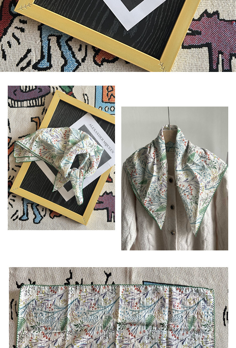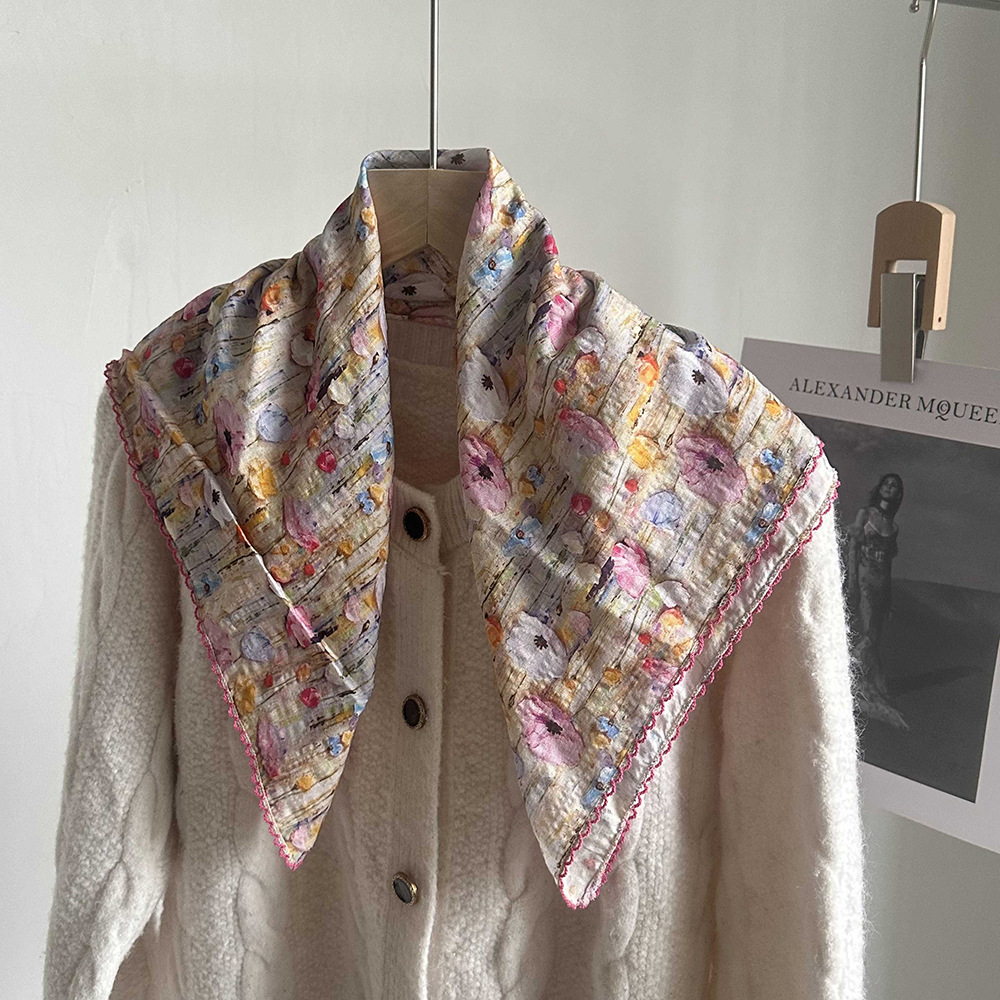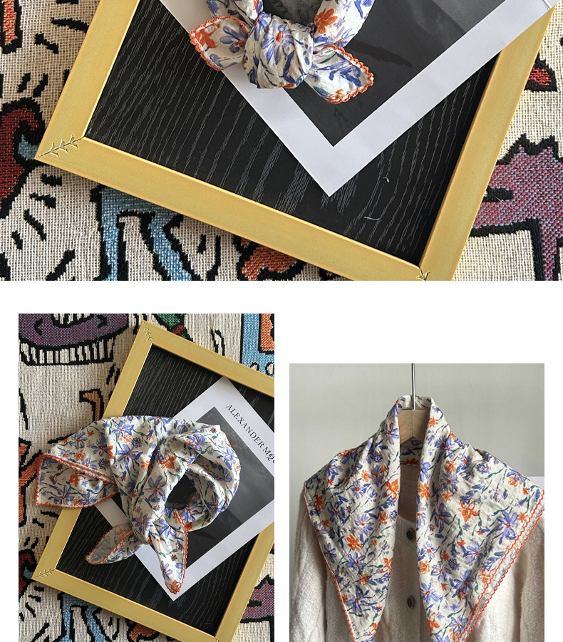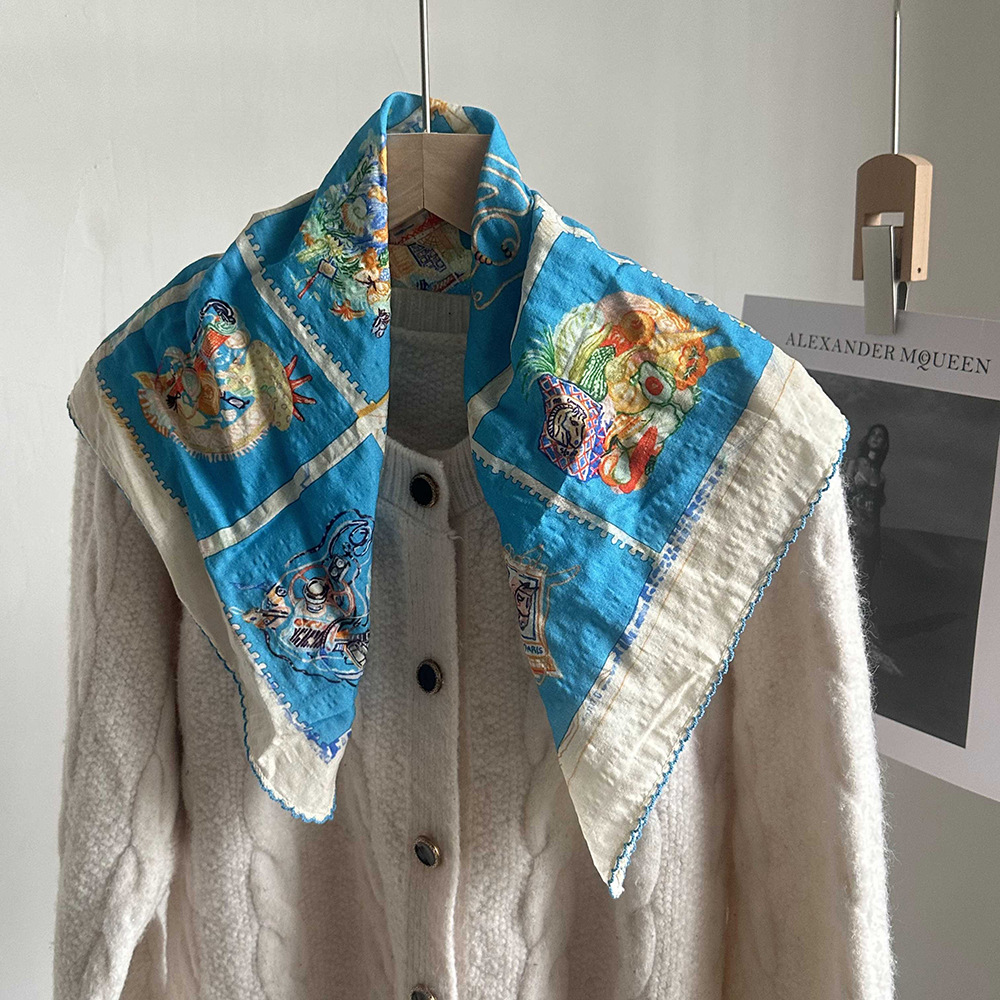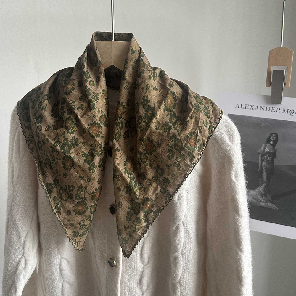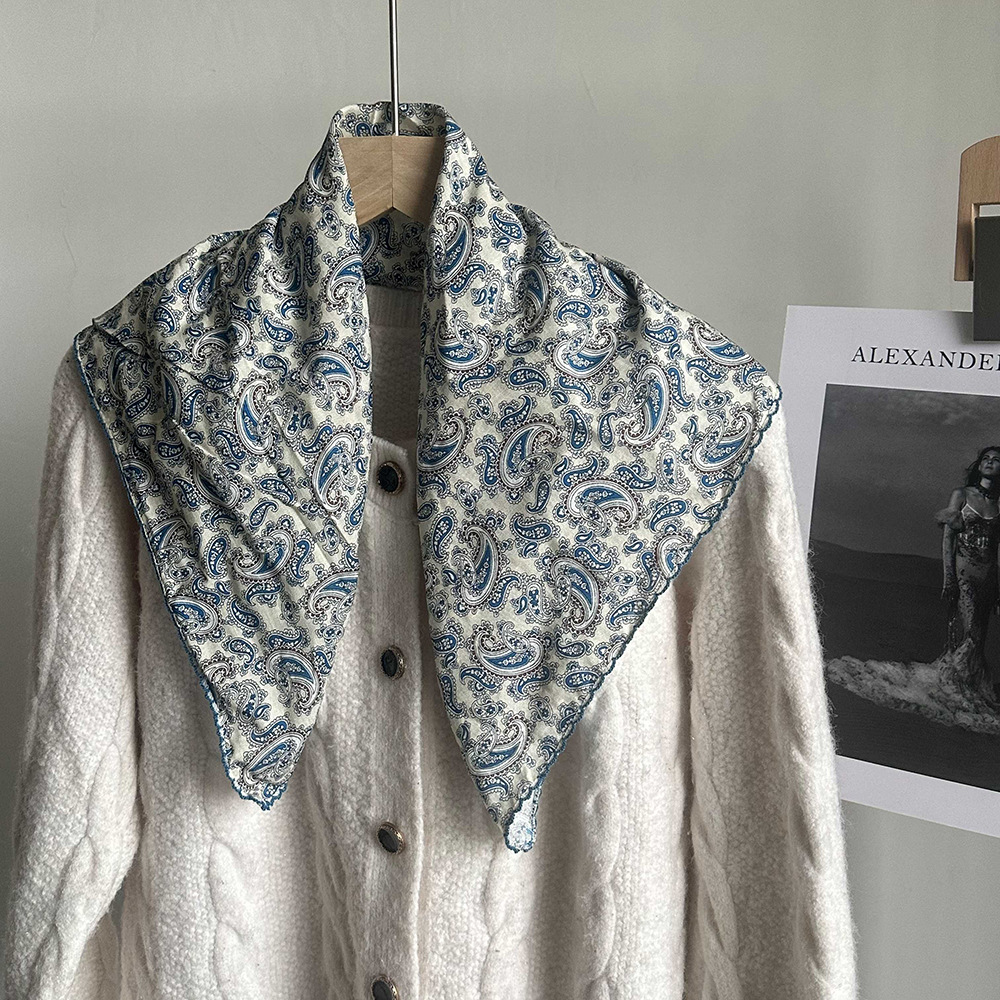 면 삼각 스카프, 실크 스카프, 한국식 작은 스카프, 패셔너블한 넥 쉐이드 숄, 다용도 터번, 롤업 엣지 스퀘어 스카프
