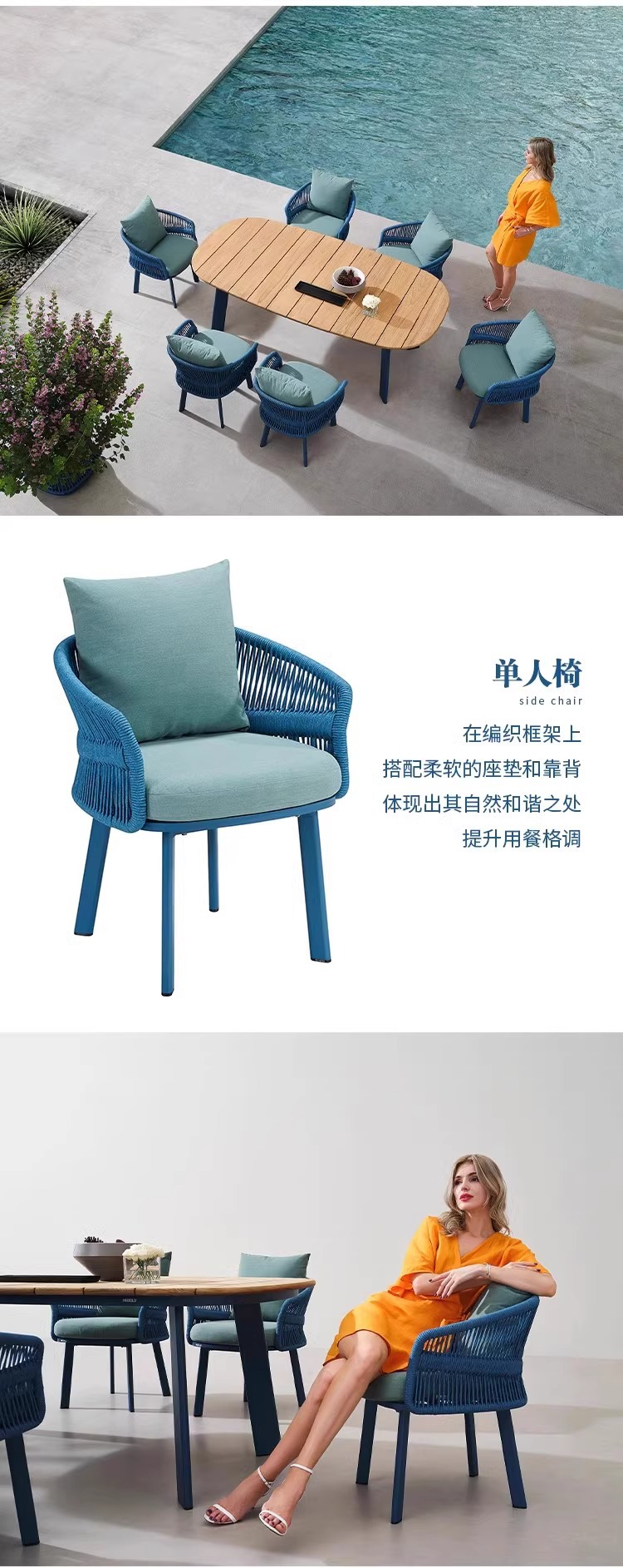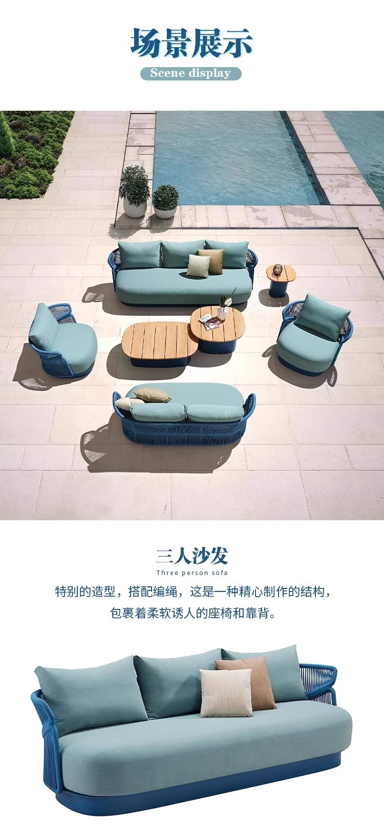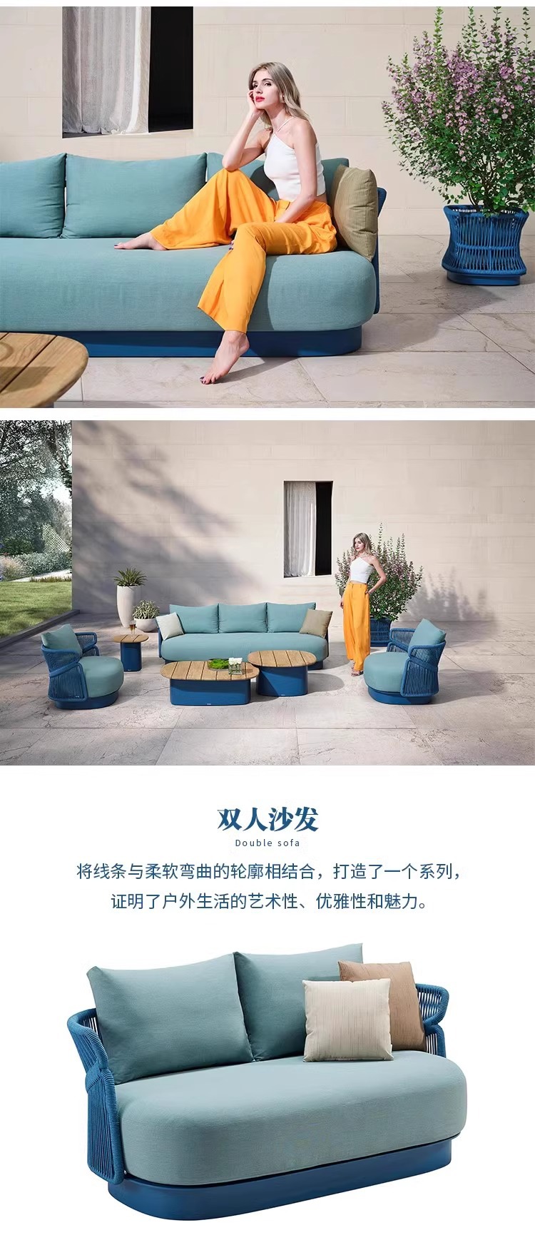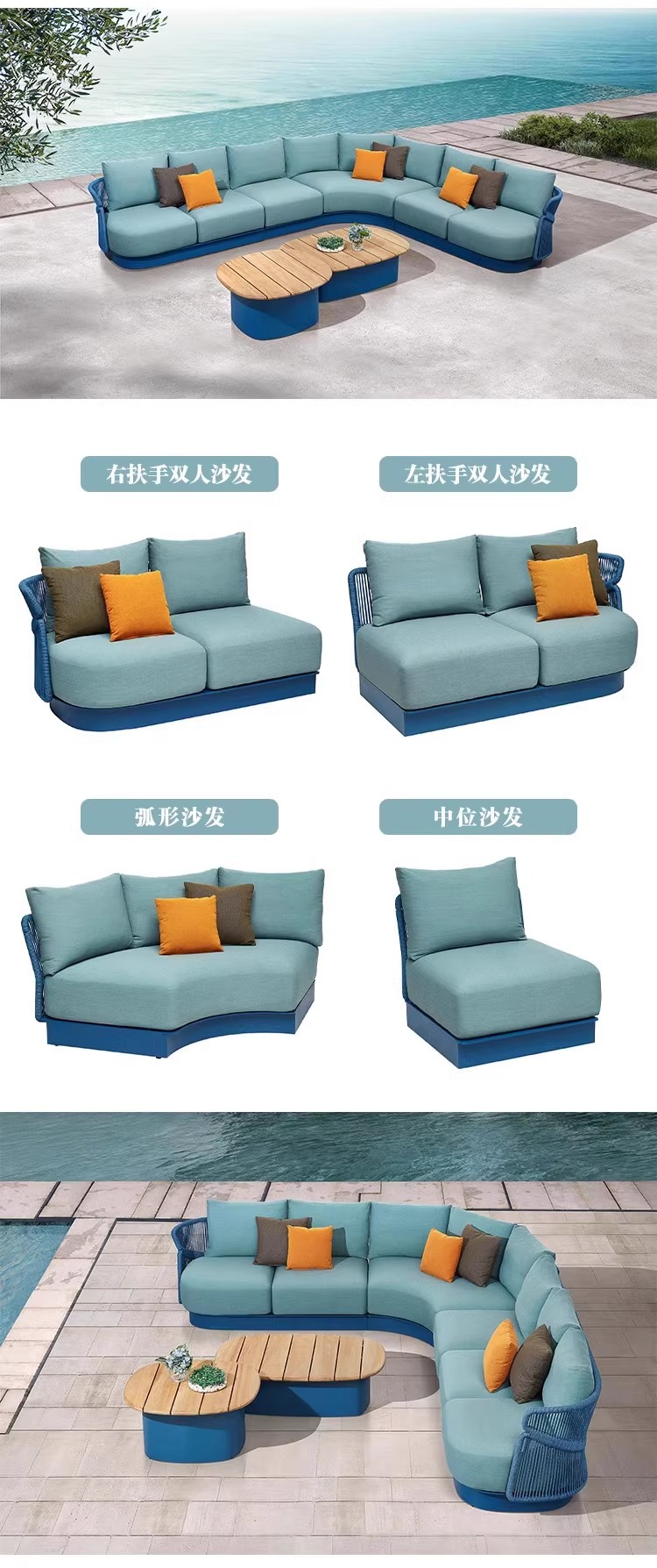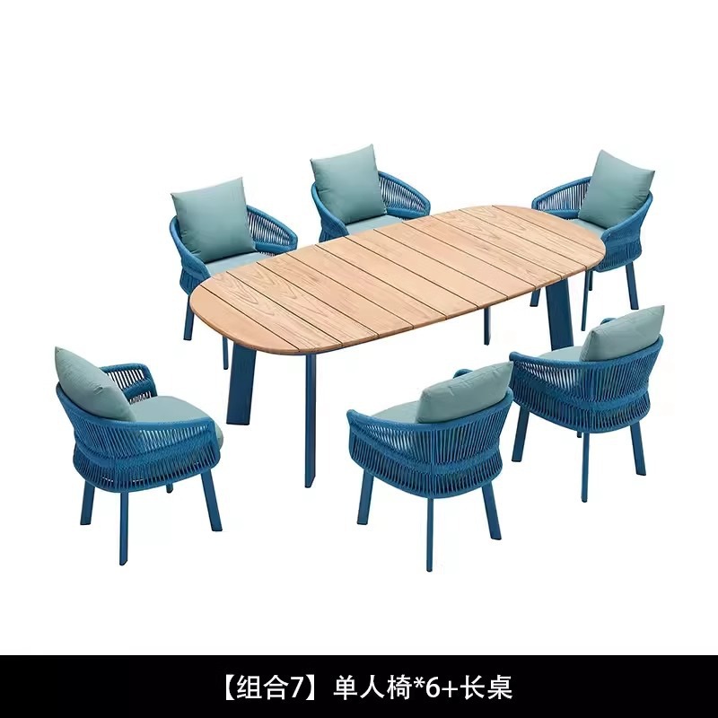 야외 등나무 소파 빌라 안뜰 야외 발코니 티크 커피 테이블 창조적 인 레저 가구 조합 간단한 현대