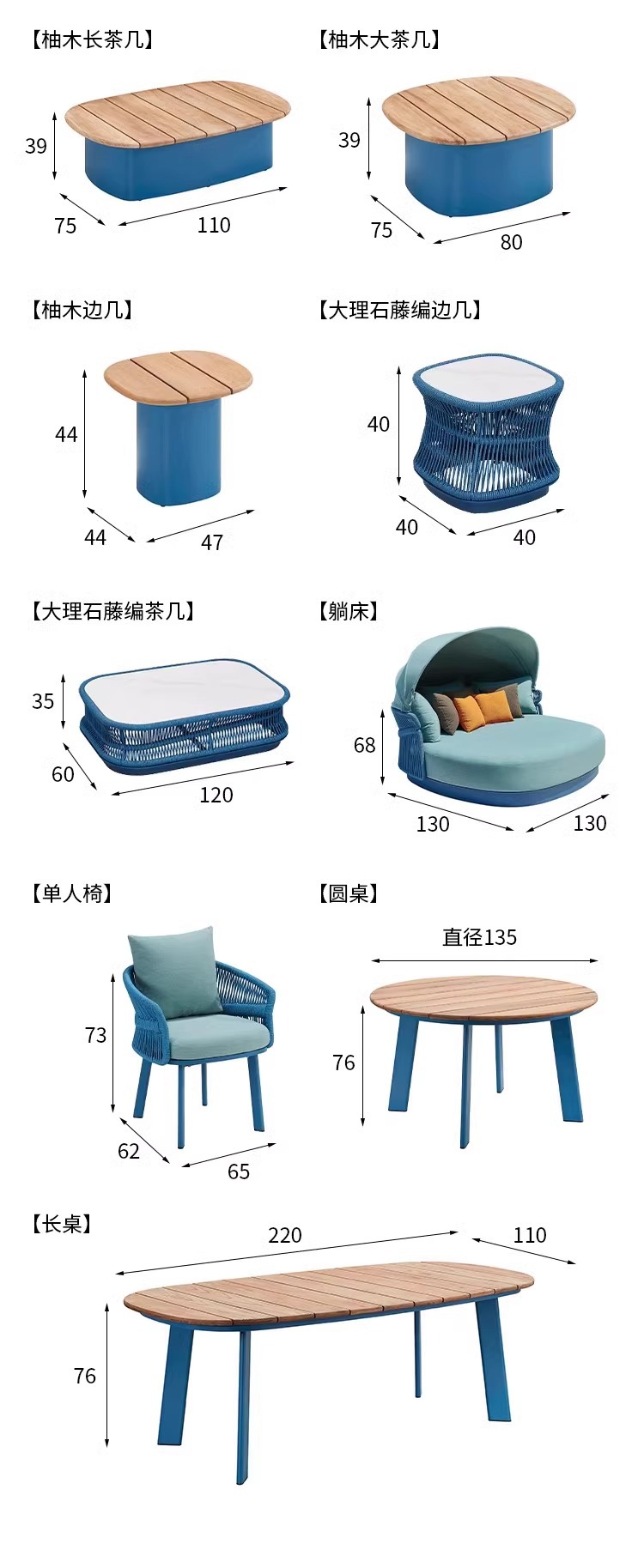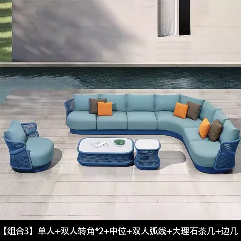 야외 등나무 소파 빌라 안뜰 야외 발코니 티크 커피 테이블 창조적 인 레저 가구 조합 간단한 현대스토어 가기
