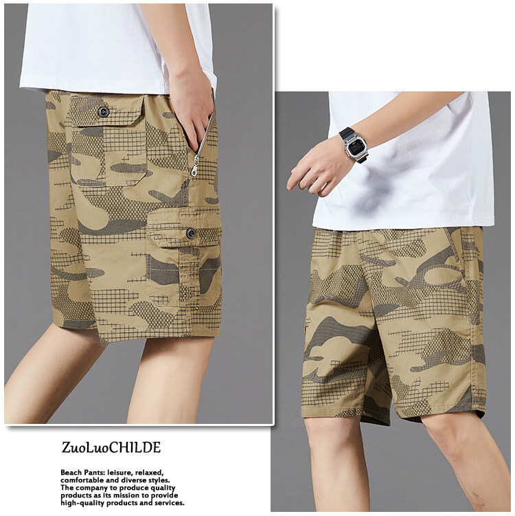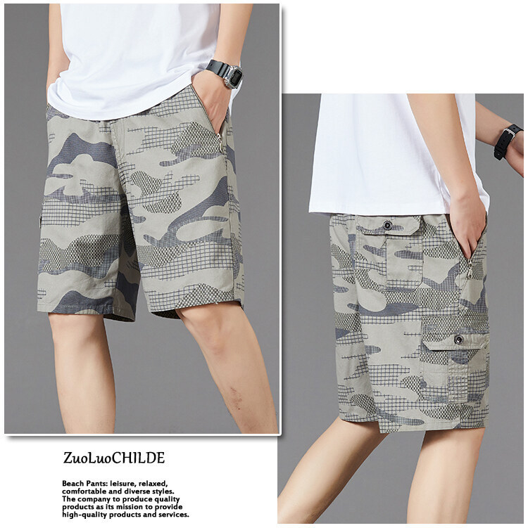 반바지 남성 여름 5 점 바지 캐주얼 위장 오버롤 대형 바지 느슨한 외부 착용 순수 면 가정용 대형 바지 얇은스토어 가기