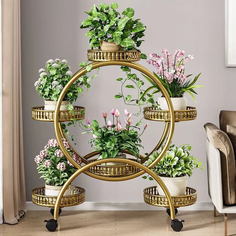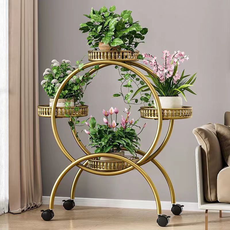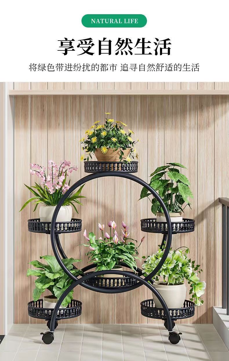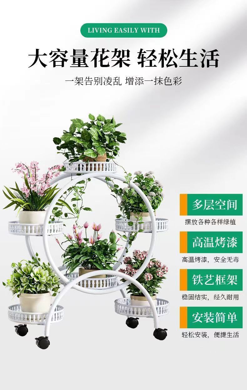 꽃 선반 거실 바닥에 서있는 움직일 수있는 녹색 꽃 냄비 랙 바퀴가 철공 다층 발코니 꽃 랙 가정용 바닥