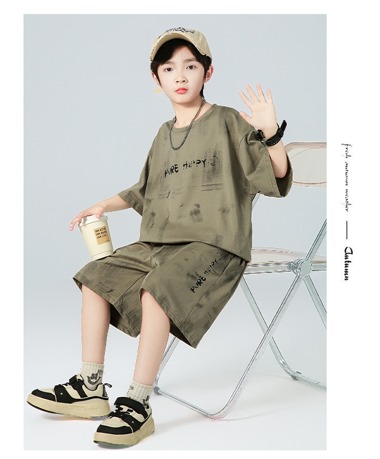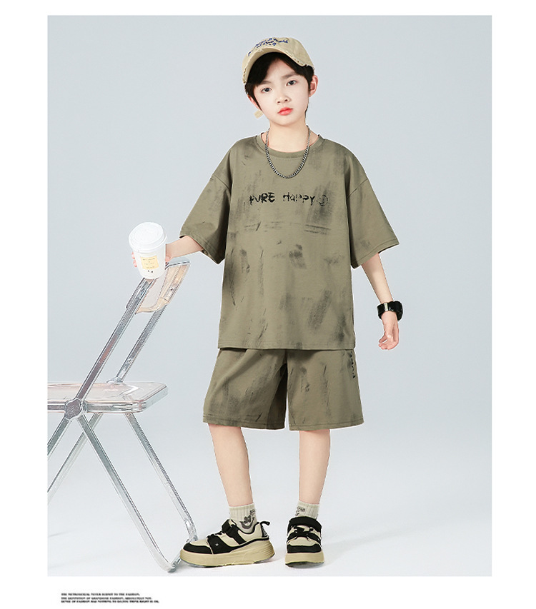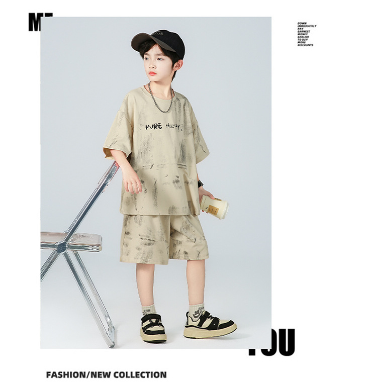 남자들의 여름 얇은 반팔 세트 2025 어린이 유행 면 티셔츠 반쪽 바지 투피스 세트스토어 가기