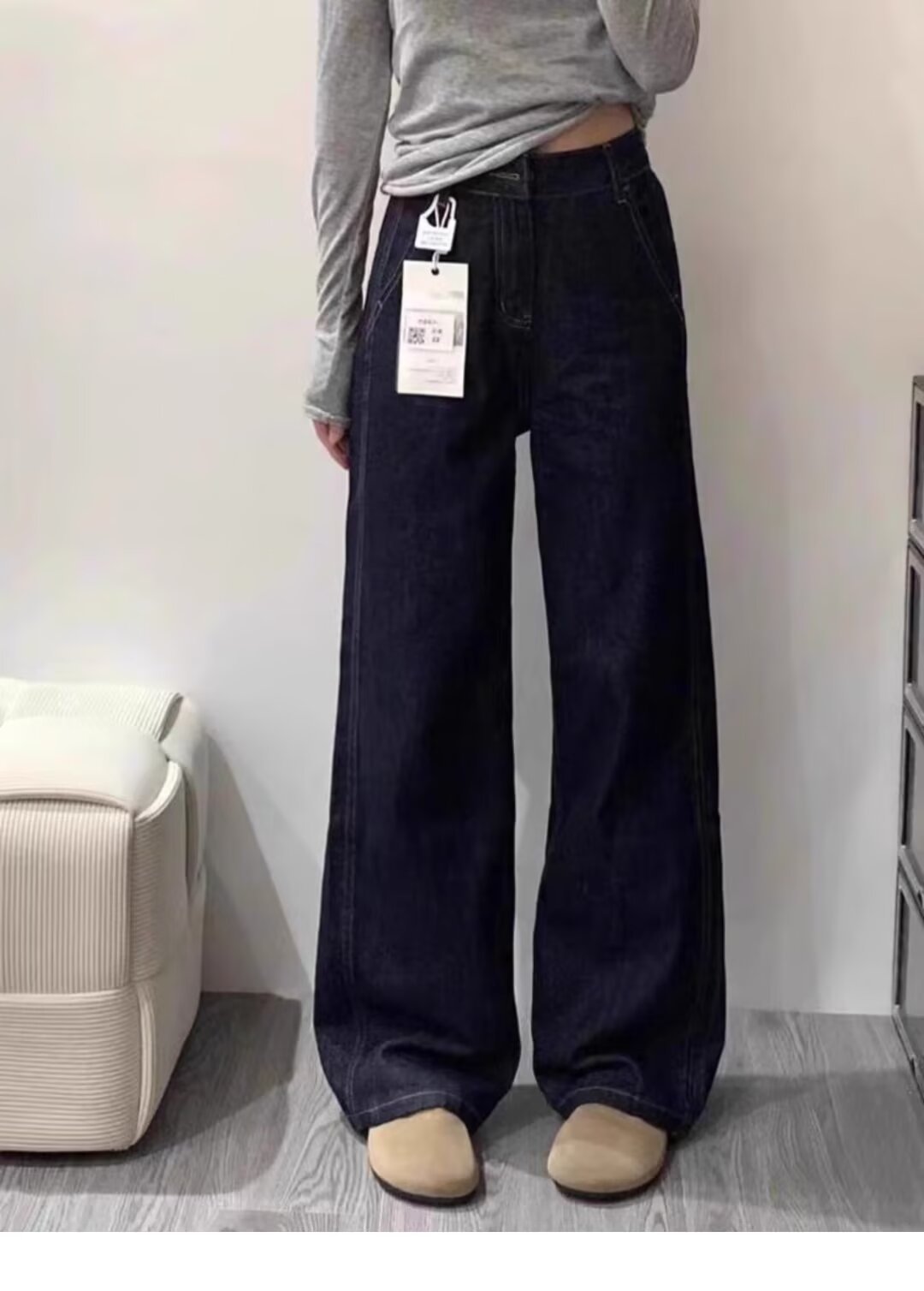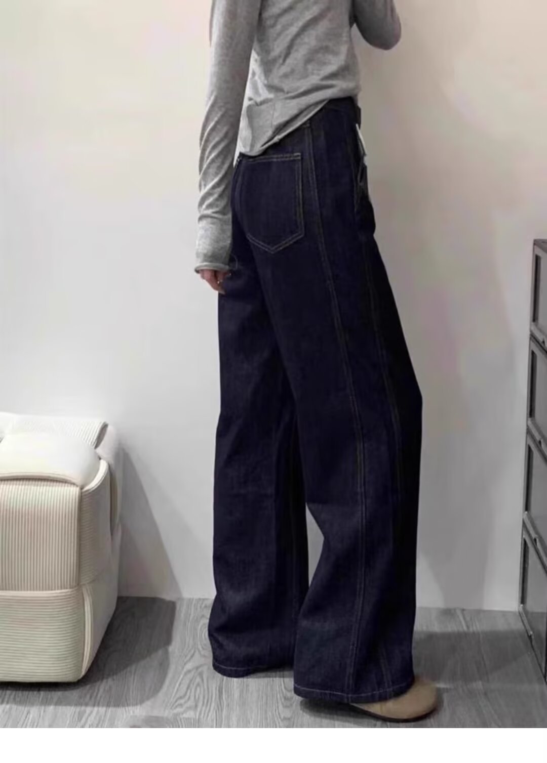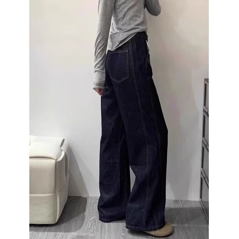 배 모양의 바디 다크 블루 스트레이트 청바지 여성용 플러스 사이즈 통통녀 고 허리 엉덩이 커버 슬리밍 와이드 레그 팬츠스토어 가기