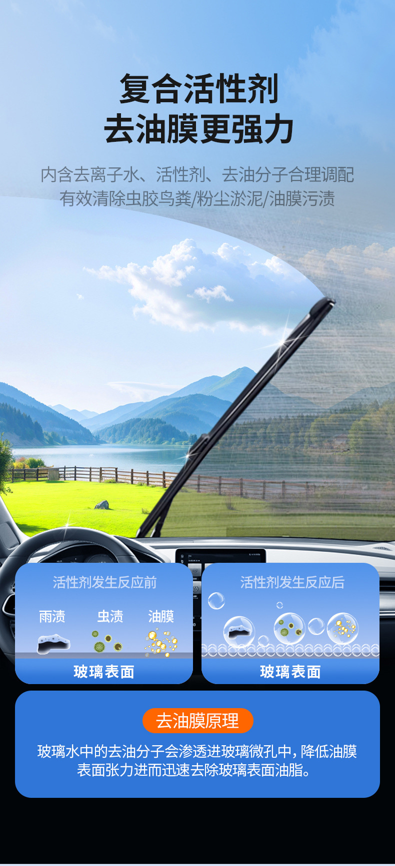 울트와 동일한 유리 세정제, 자동차 전용 오일 필름 제거제, 강력한 오염 제거, 자동차용 에탄올 유리 세정제, 사계절 사용 가능스토어 가기