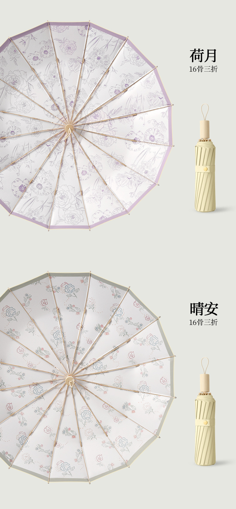 새로운 나무 손잡이 16 뼈 컬러 접착제 우산 3 접착제 태양 보호 UV 보호 프랑스 태양 우산 국경 간 선물 우산스토어 가기