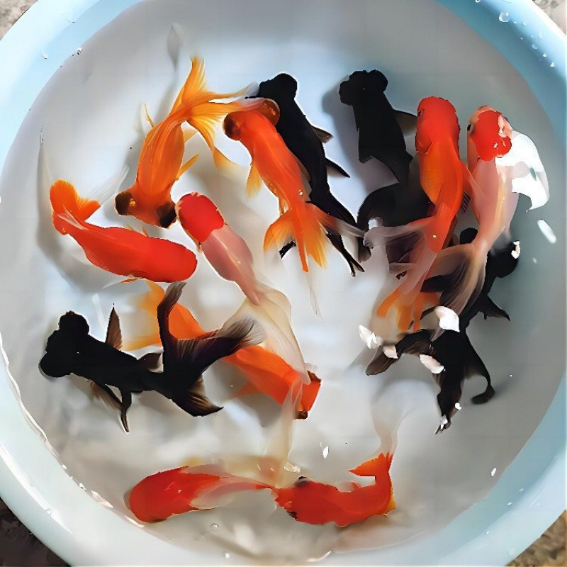 작은 금붕어 살아있는 물고기 냉수 관상용 생선 튀김 작은 잉어 신선한 물 좋은 번식 란쇼 우뚝 태국 사자 작은 물고기