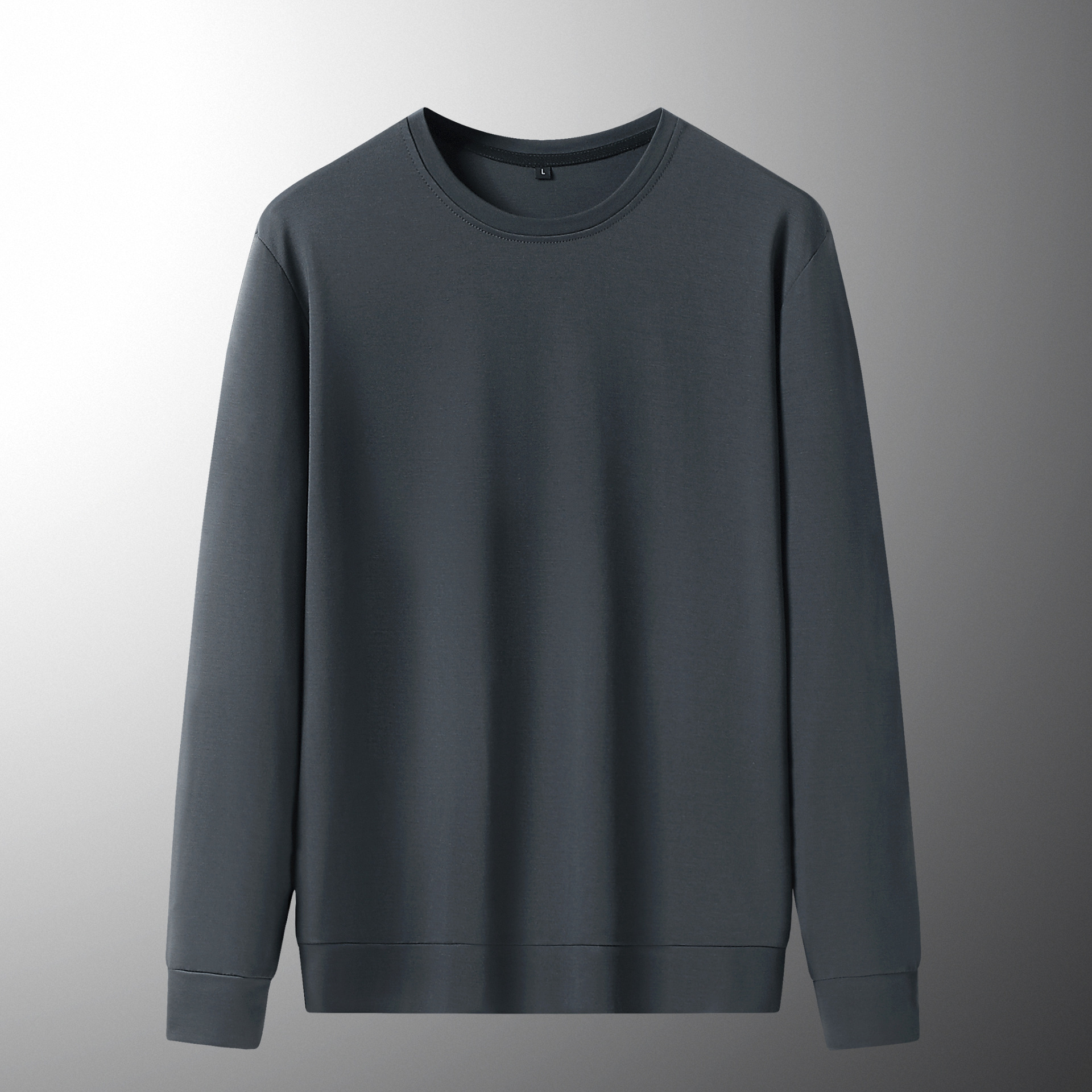남자 2025 봄과 가을 남자 캐주얼 세트 새로운 스타일 스웨터 텐셀 로마 패브릭 스포츠 라운드 넥 스웨터 재고