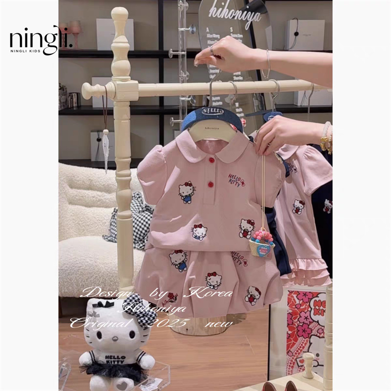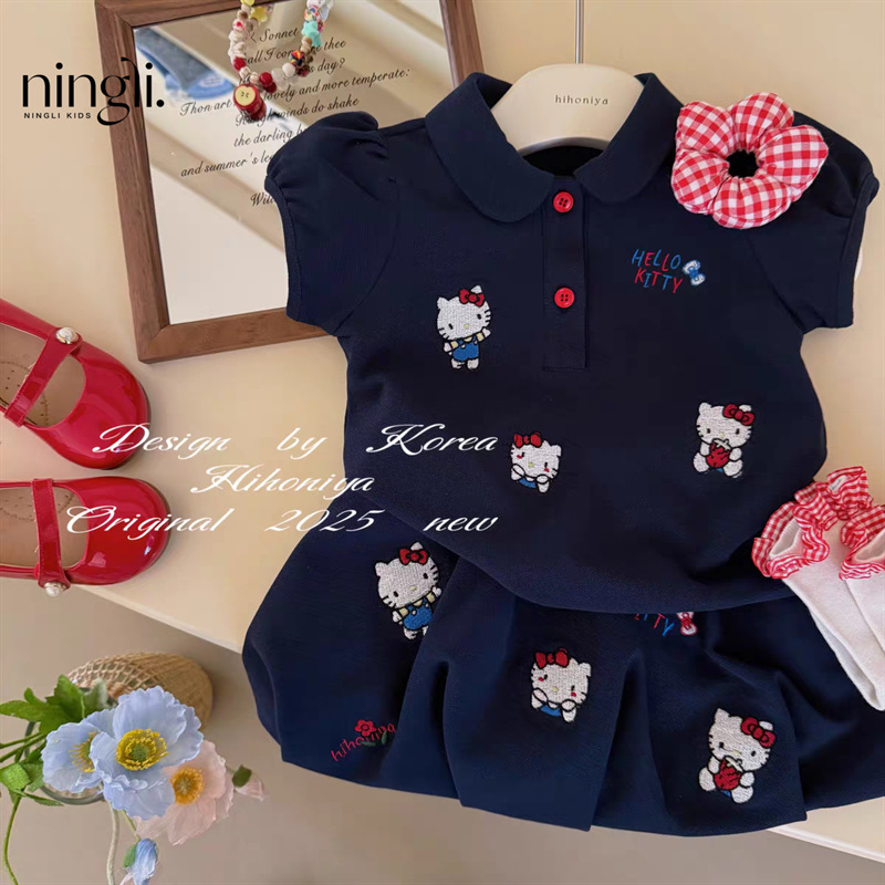 [라임] 여자 한국식 만화 네이비 타월 자수 짧은 소매 반바지 세트 25 여름 유행 투피스 세트