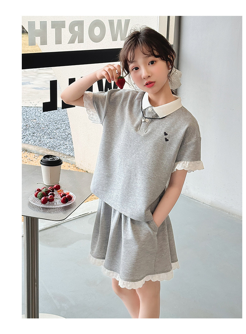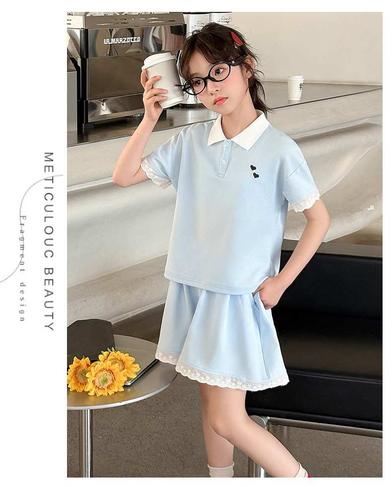 여자 반팔 반바지 세트 2025 년 여름 새 어린이 한국식 폴로 캐주얼 운동복 투피스 세트