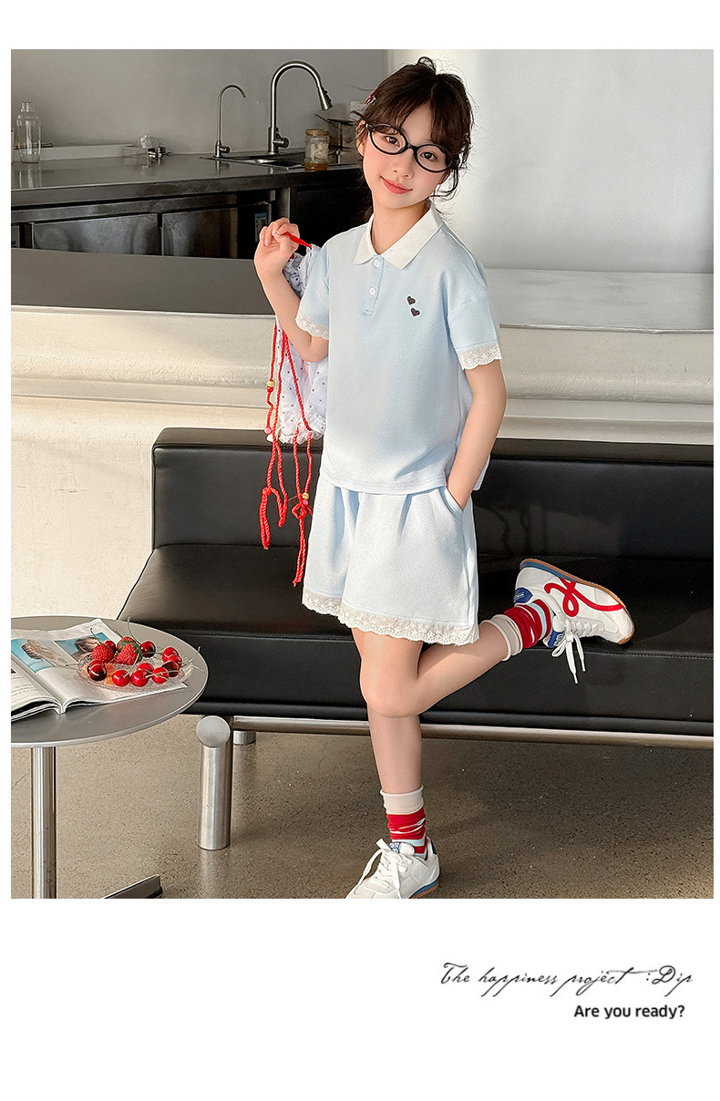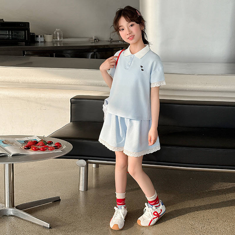 여자 반팔 반바지 세트 2025 년 여름 새 어린이 한국식 폴로 캐주얼 운동복 투피스 세트스토어 가기