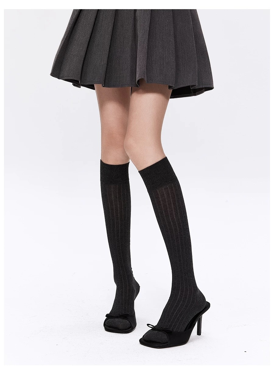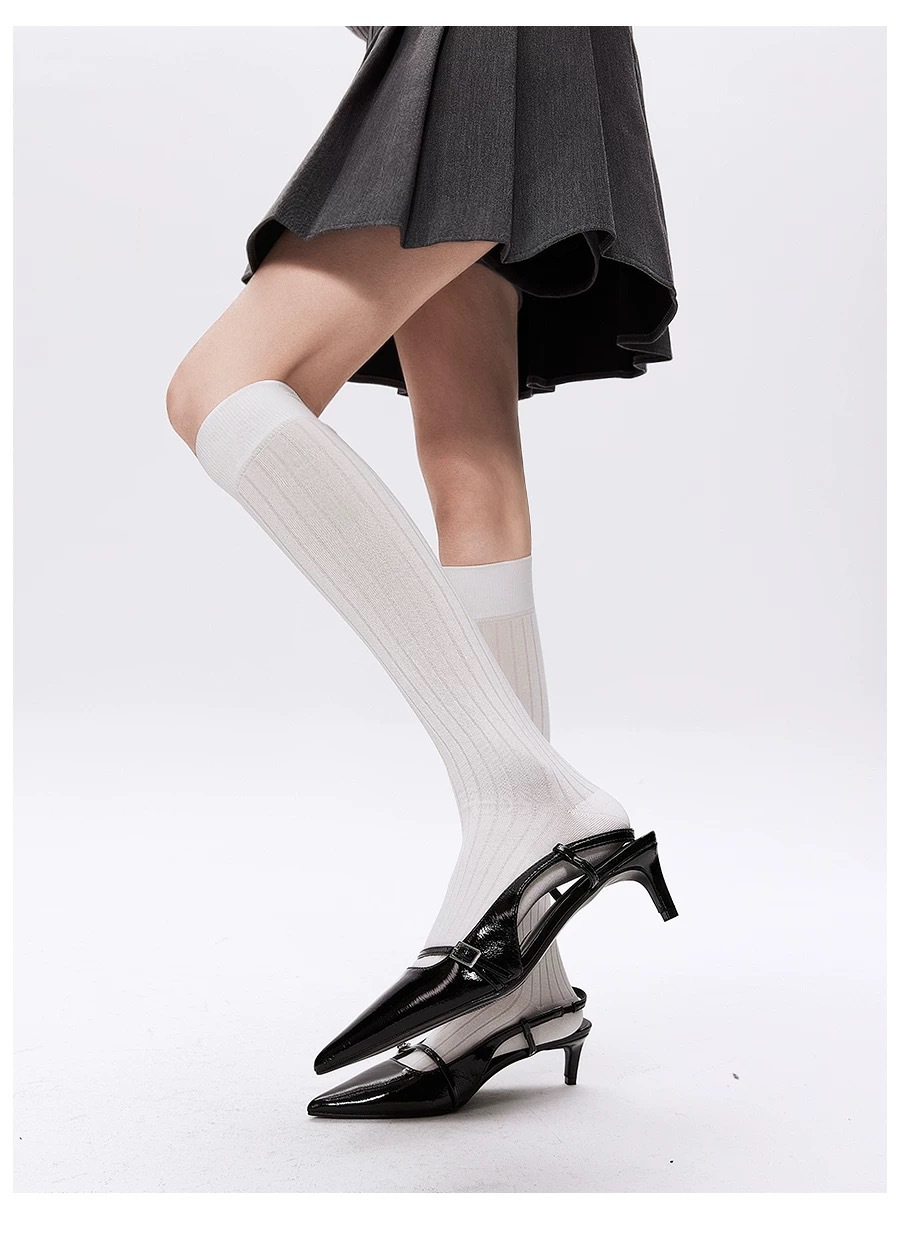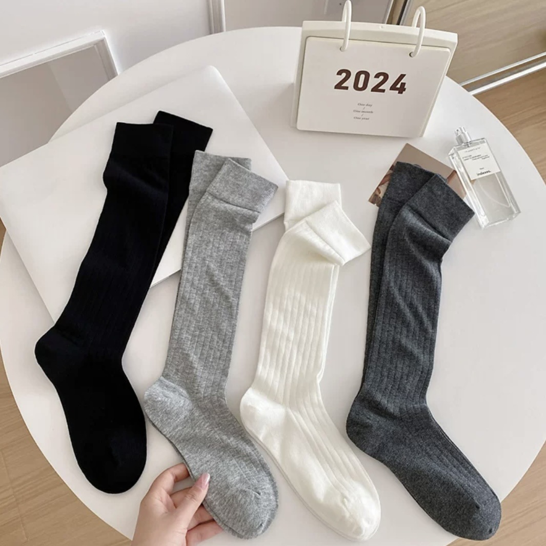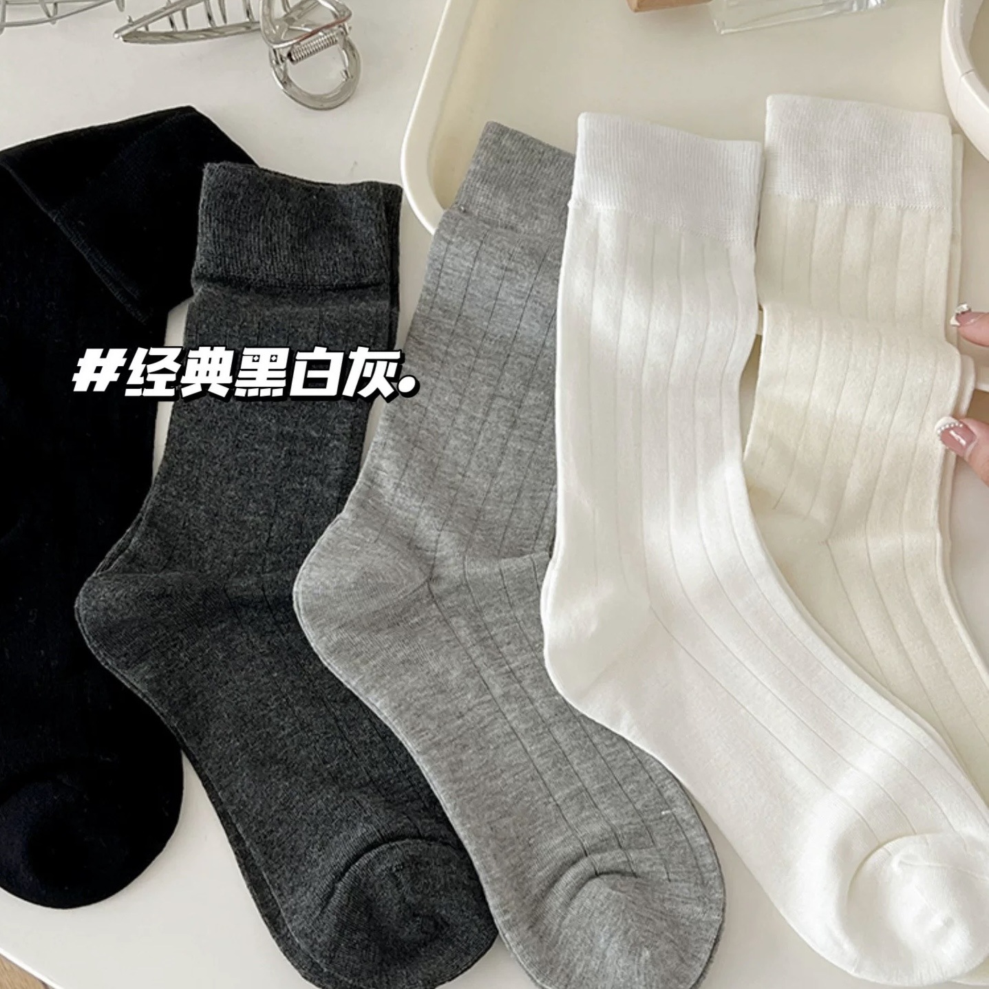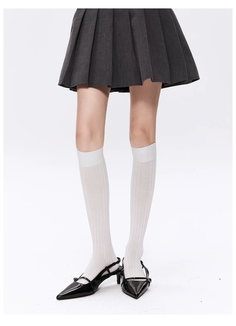 화이트 송아지 양말 여성의 봄과 여름 얇은 뼈없는 스택 양말 발레 스타일 롱 배럴 로리타 솔리드 컬러 메리 제인 양말
