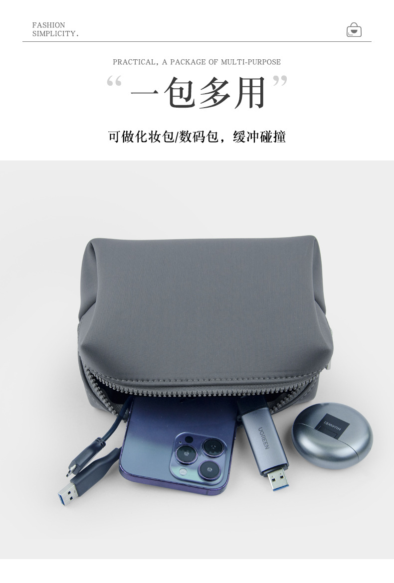 手机耳机小杂物收纳包外出便携简约纯色潜水料洗漱化妆包立体不塌