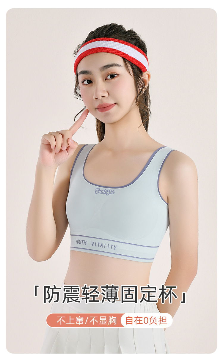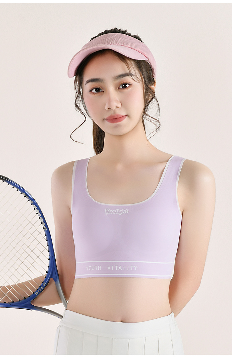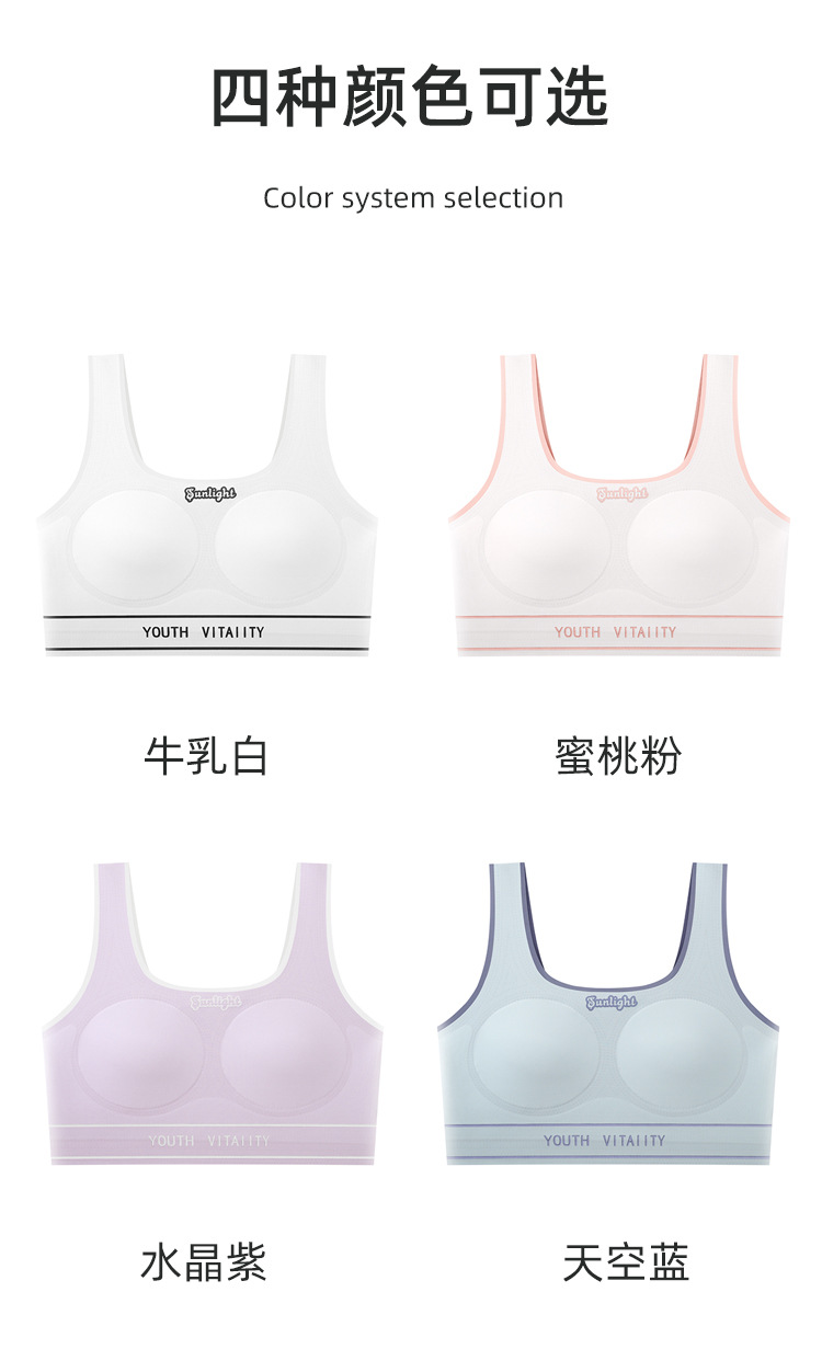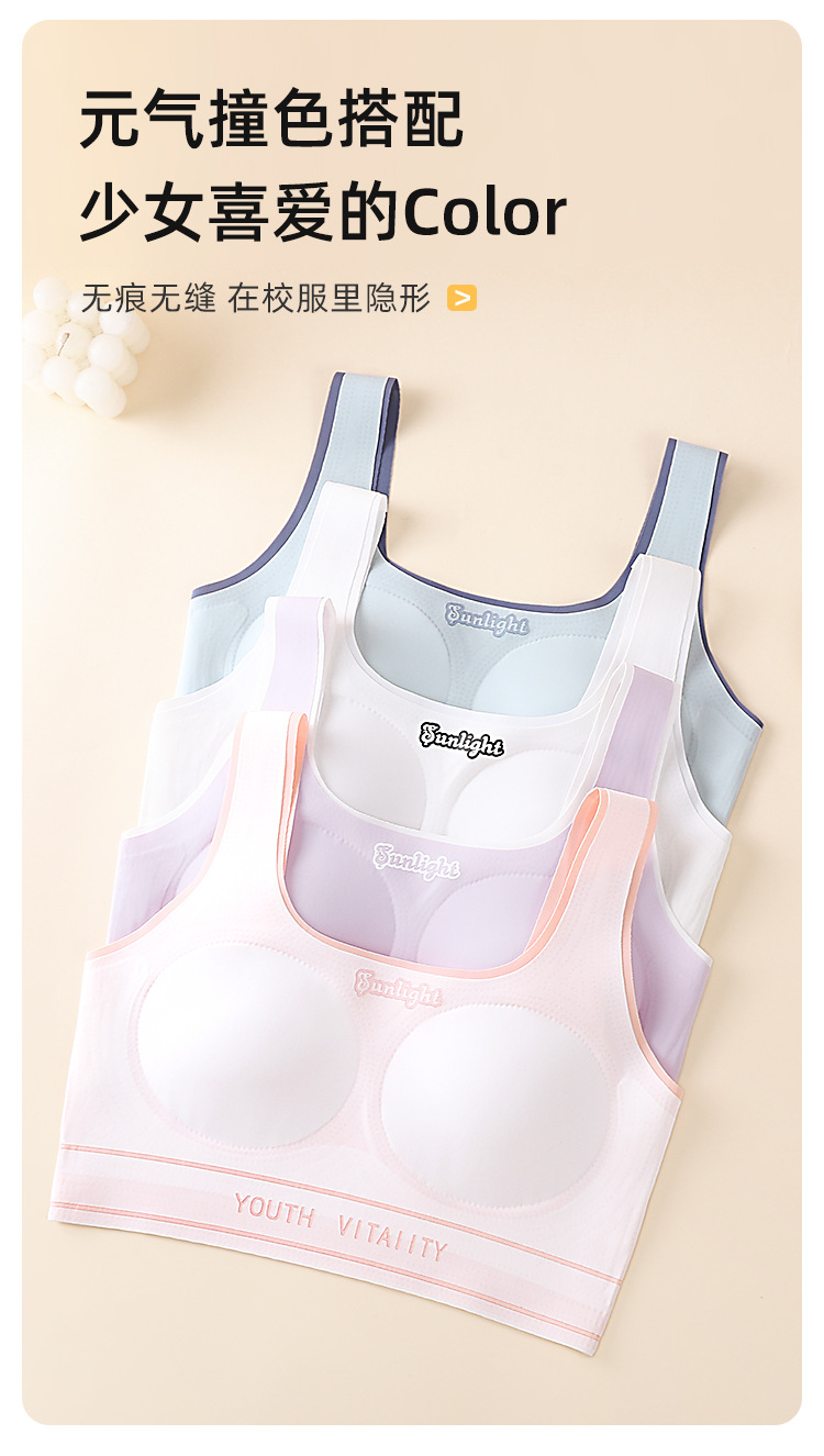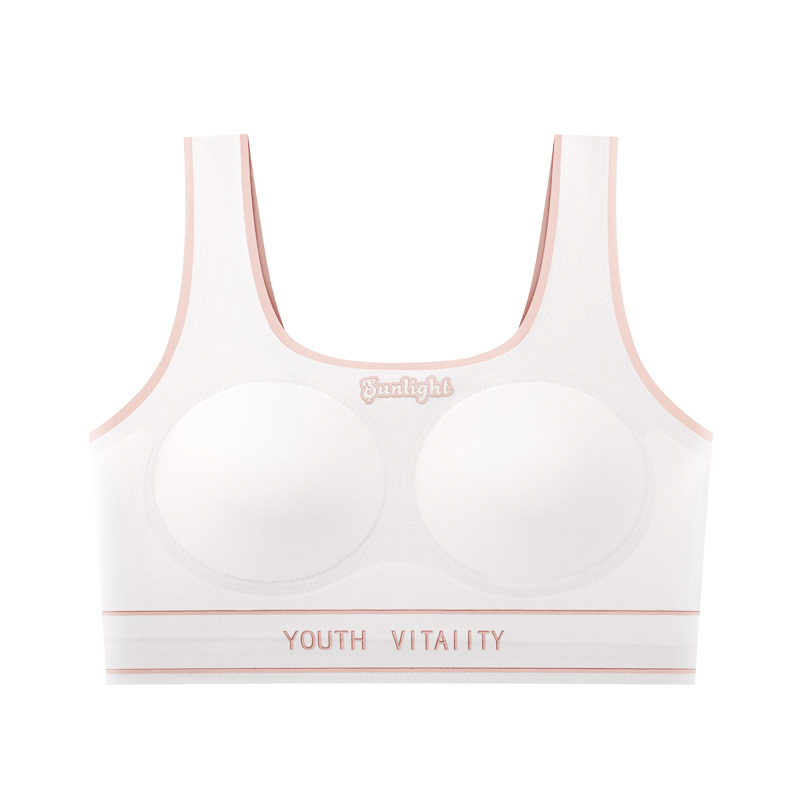 Traceless 주니어 고등학교 학생 소녀 브라 스포츠 조끼 개발 기간 풀 아웃 가슴 속옷 고정 컵 튜브 탑 얇은스토어 가기