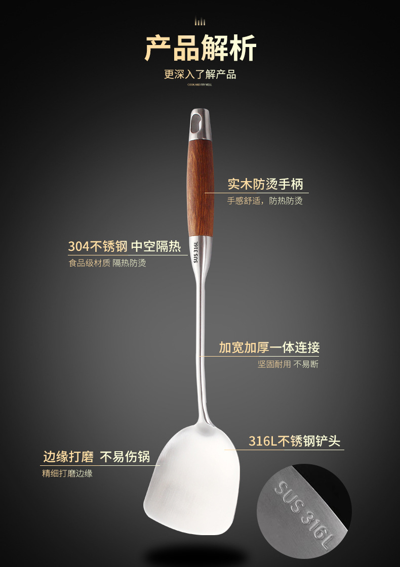 독일 주걱 316 스테인레스 스틸 두꺼운 요리 주걱 국자 가정용 주방 용품 프라이팬 세트 철 주걱스토어 가기