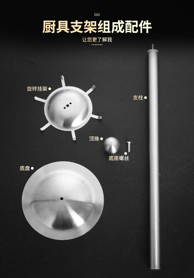 • 항균 316 스테인레스 스틸 [4종 세트 + 회전 걸이] 평생 사용 가능, 화상 방지 원목
