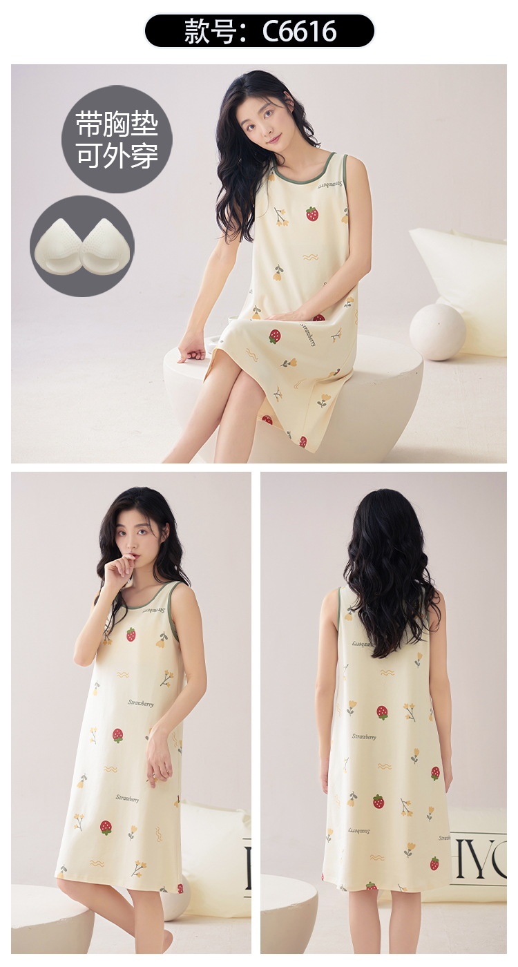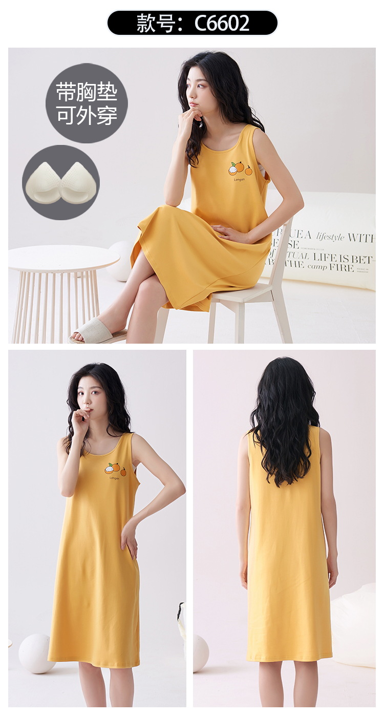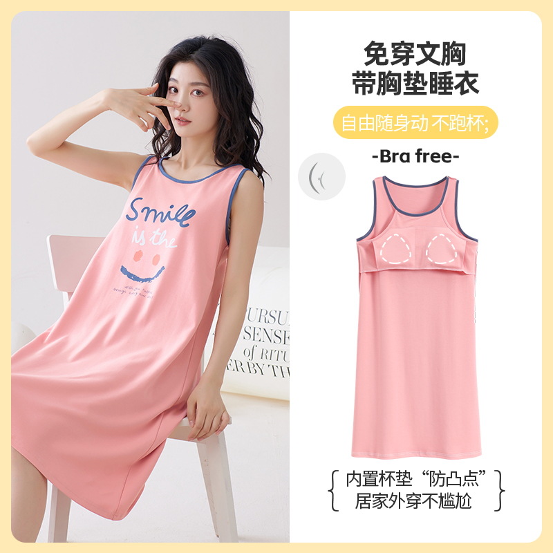 민소매 조끼 나이트 드레스 여성용 항균 순수 코튼 한국 스타일 달콤한 느슨한 여성 캐주얼 오버 더 무릎 미디 원피스 여성용 씬스토어 가기