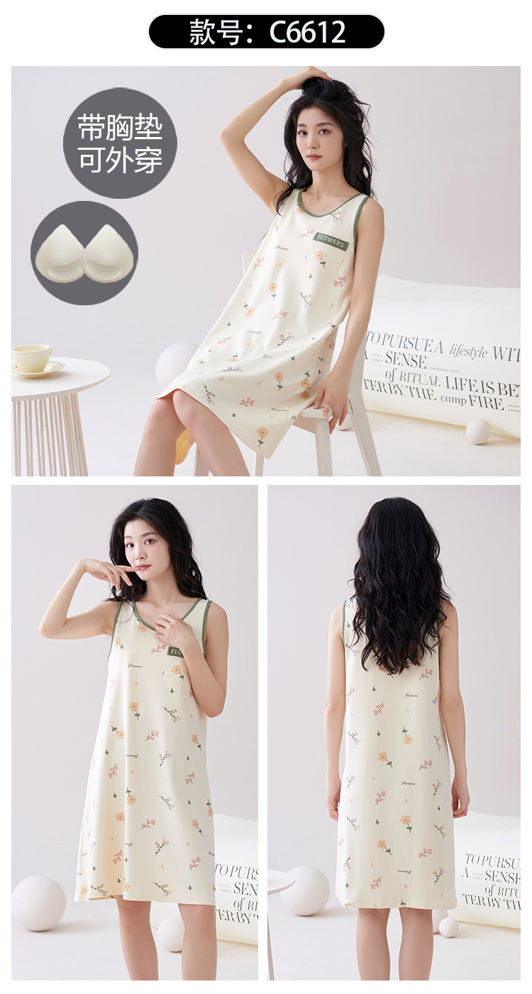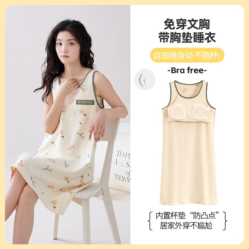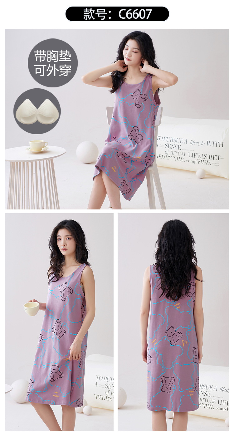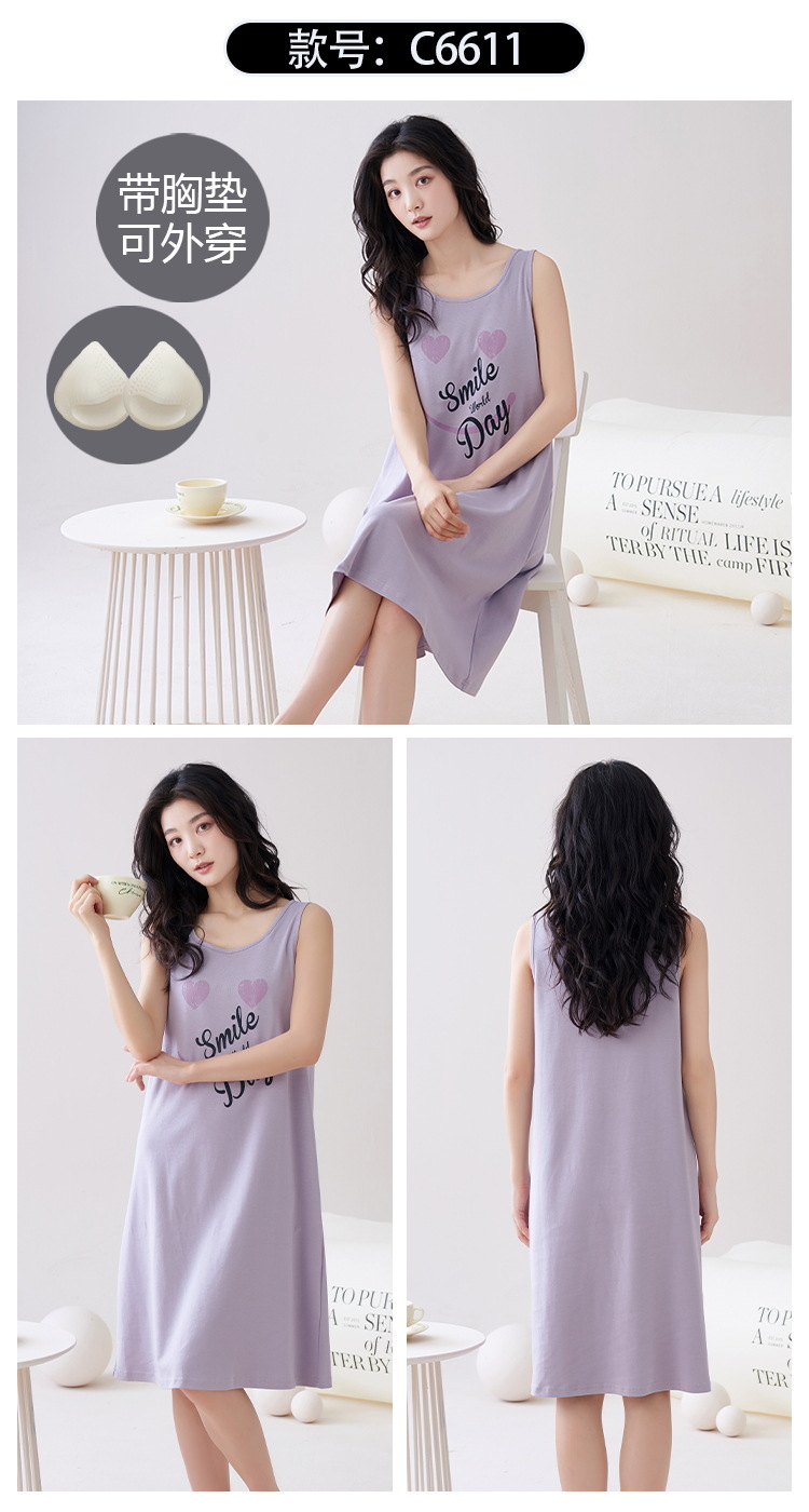 민소매 조끼 나이트 드레스 여성용 항균 순수 코튼 한국 스타일 달콤한 느슨한 여성 캐주얼 오버 더 무릎 미디 원피스 여성용 씬스토어 가기
