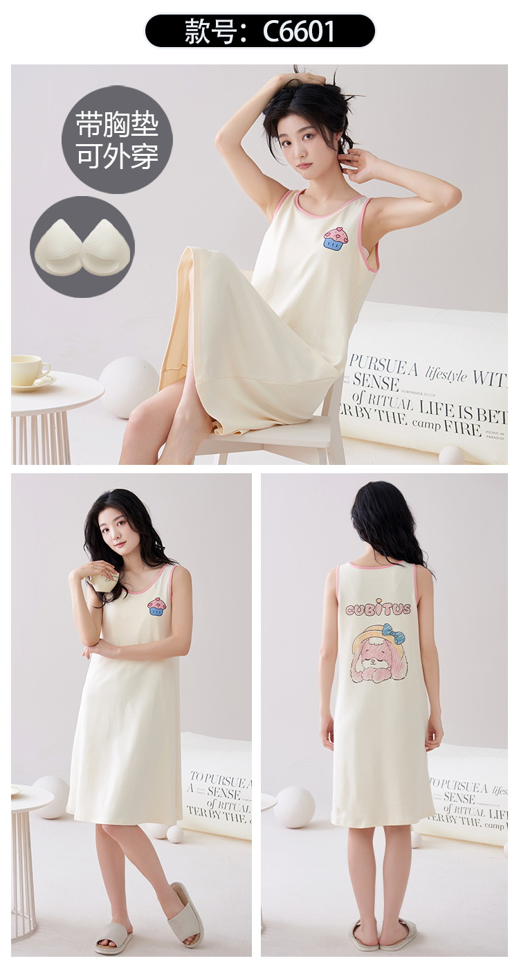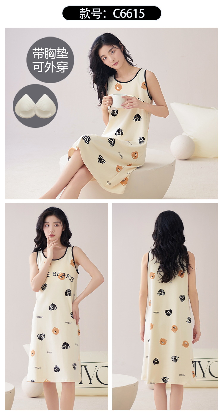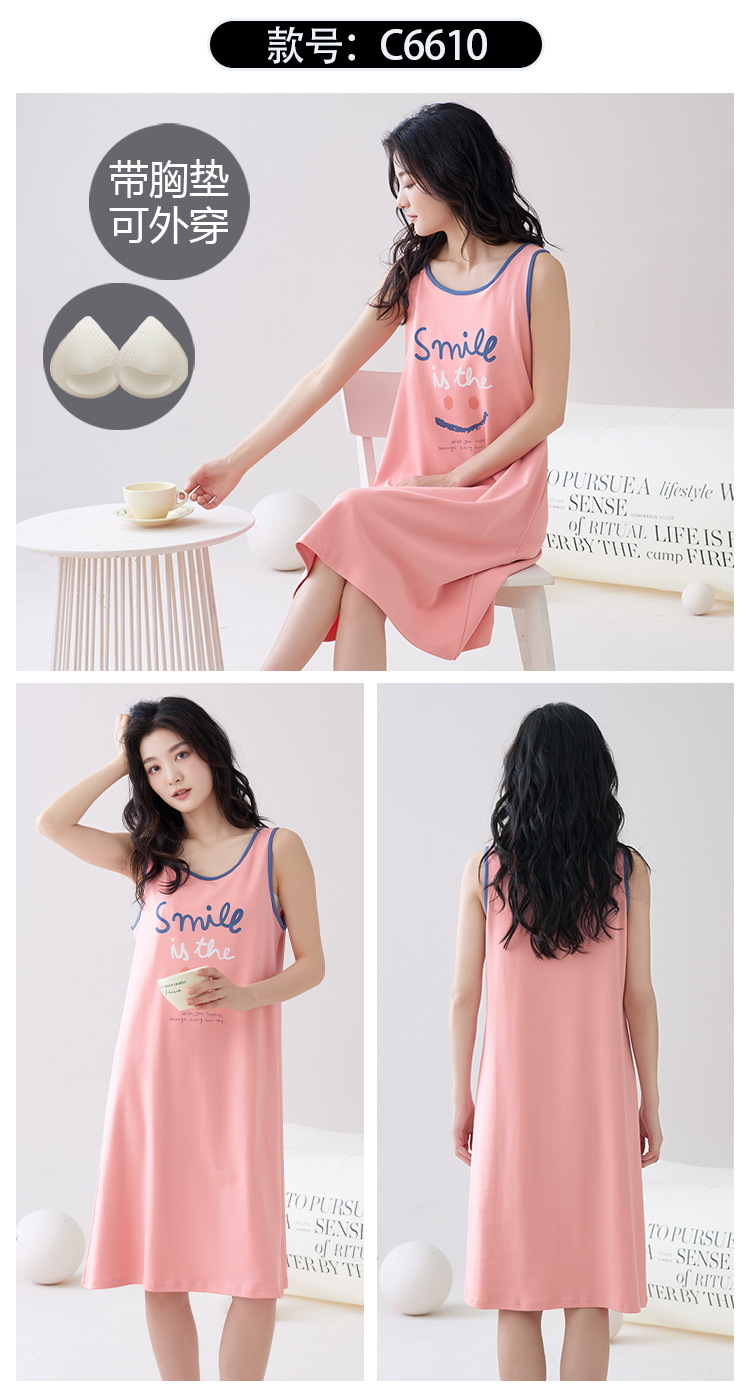 민소매 조끼 나이트 드레스 여성용 항균 순수 코튼 한국 스타일 달콤한 느슨한 여성 캐주얼 오버 더 무릎 미디 원피스 여성용 씬