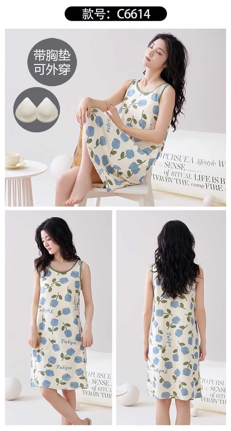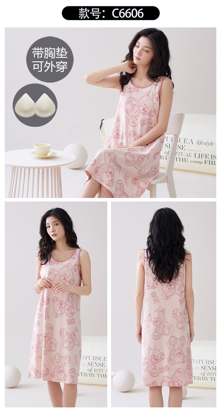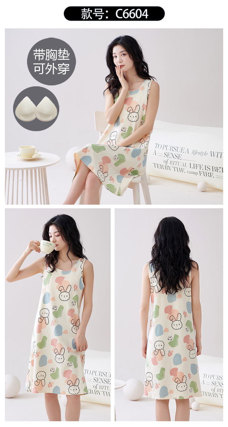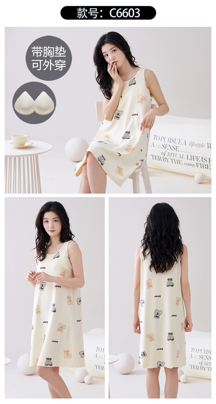 민소매 조끼 나이트 드레스 여성용 항균 순수 코튼 한국 스타일 달콤한 느슨한 여성 캐주얼 오버 더 무릎 미디 원피스 여성용 씬
