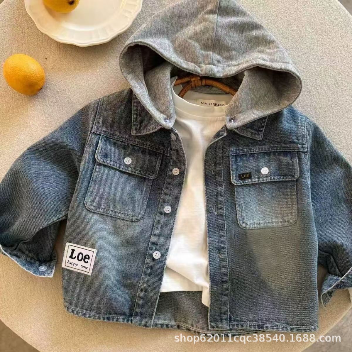 어린이 데님 자켓 분리형 후드형 2025 봄과 가을 새 한국 소년 자켓 아기의 오래 된 긴 소매 탑