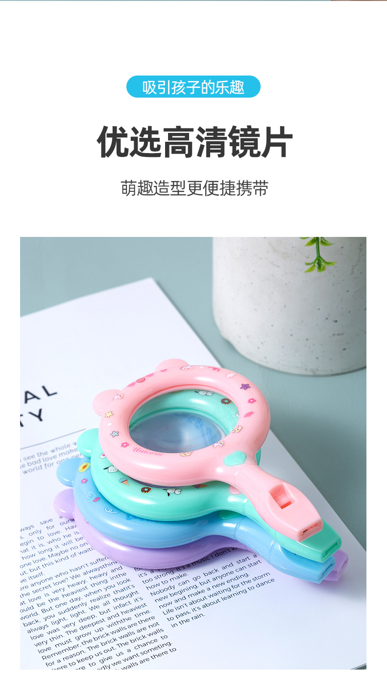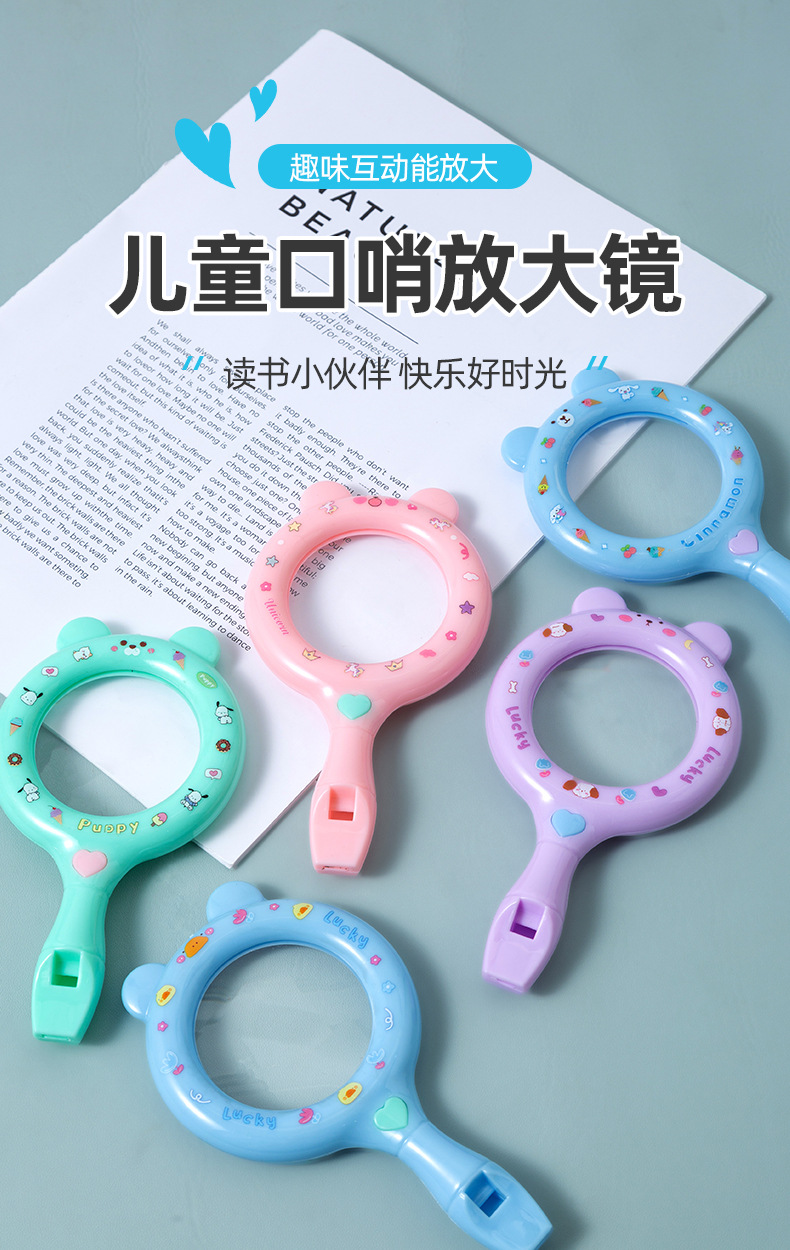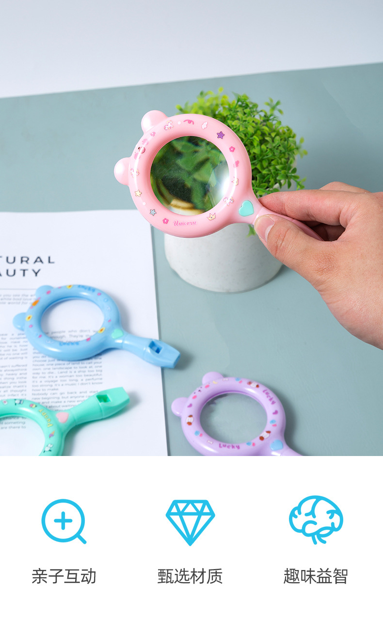 어린이 휘슬 돋보기 플라스틱 휴대용 교육 장난감 과학 HD 만화 돋보기 유치원 선물스토어 가기