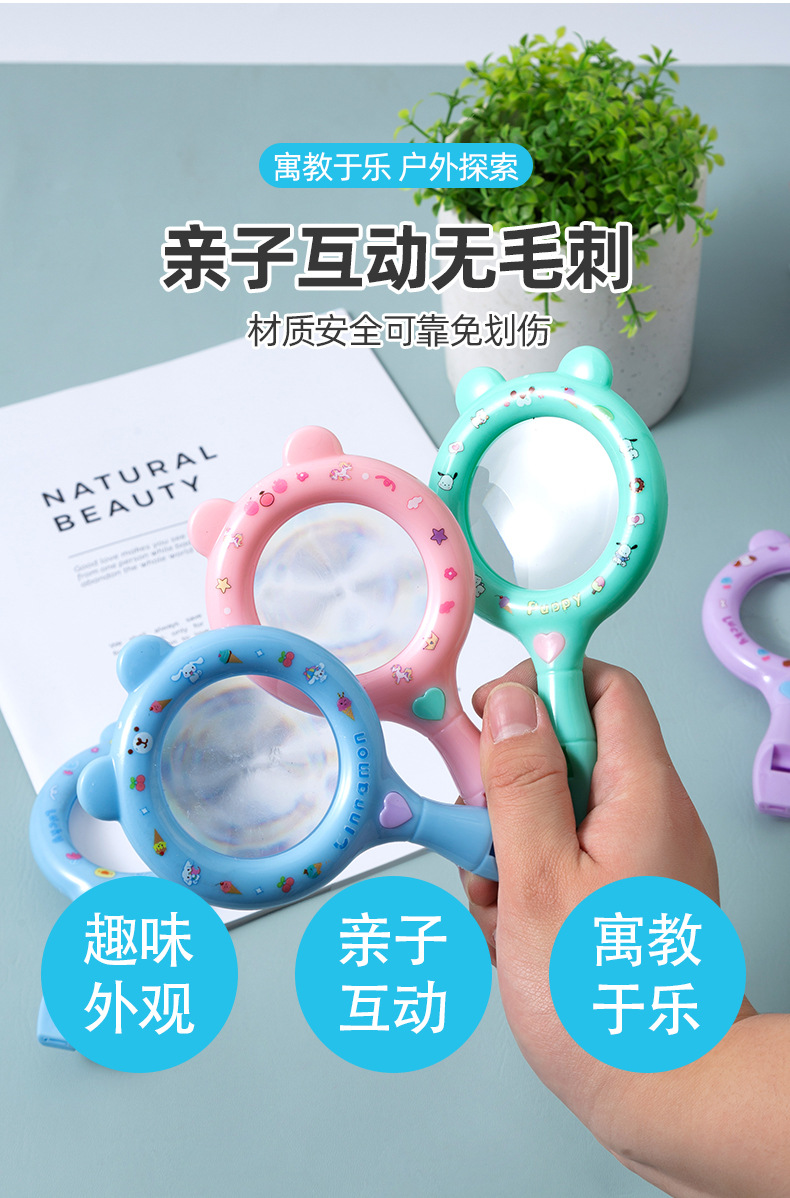 어린이 휘슬 돋보기 플라스틱 휴대용 교육 장난감 과학 HD 만화 돋보기 유치원 선물
