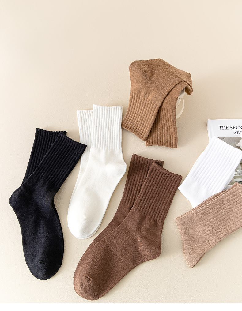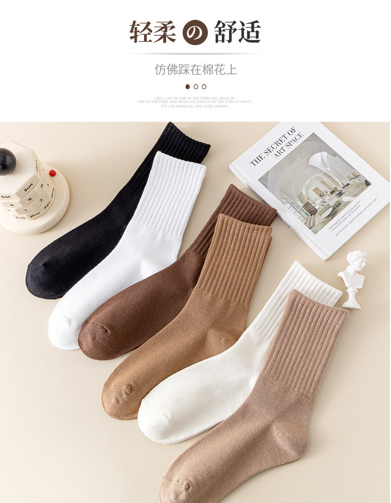 양말 여성의 봄과 여름 중간 튜브 양말 소녀 가을과 겨울 캐주얼 화이트 코튼 양말 Loafers 스택 양말 문 양말