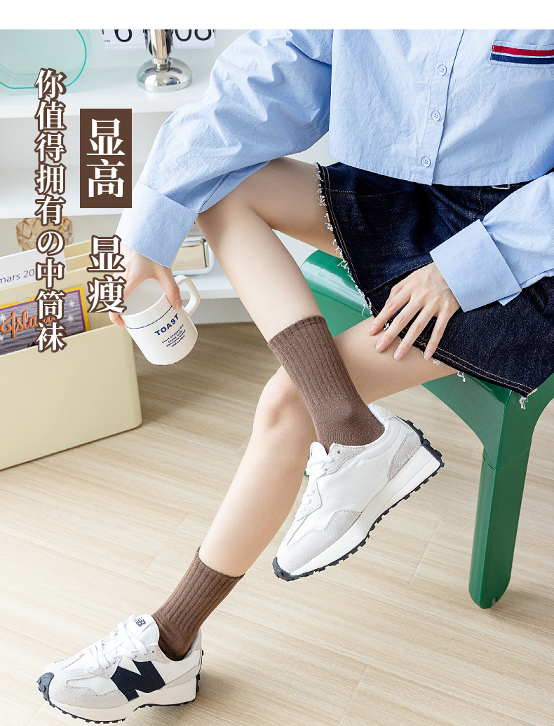 양말 여성의 봄과 여름 중간 튜브 양말 소녀 가을과 겨울 캐주얼 화이트 코튼 양말 Loafers 스택 양말 문 양말스토어 가기
