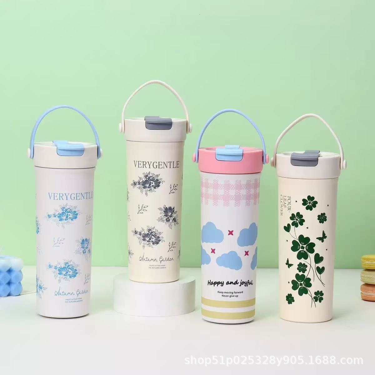 새로운 행운의 네 잎 클로버 더블 음료 커피 컵 304 스테인레스 스틸 보온병 컵 대용량 자동차 선물 컵 도매