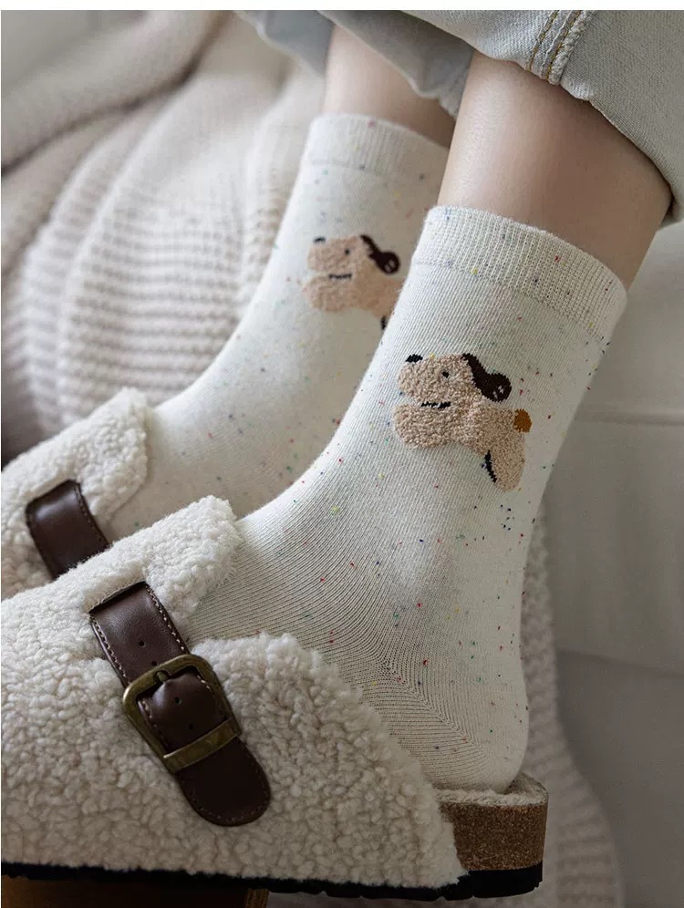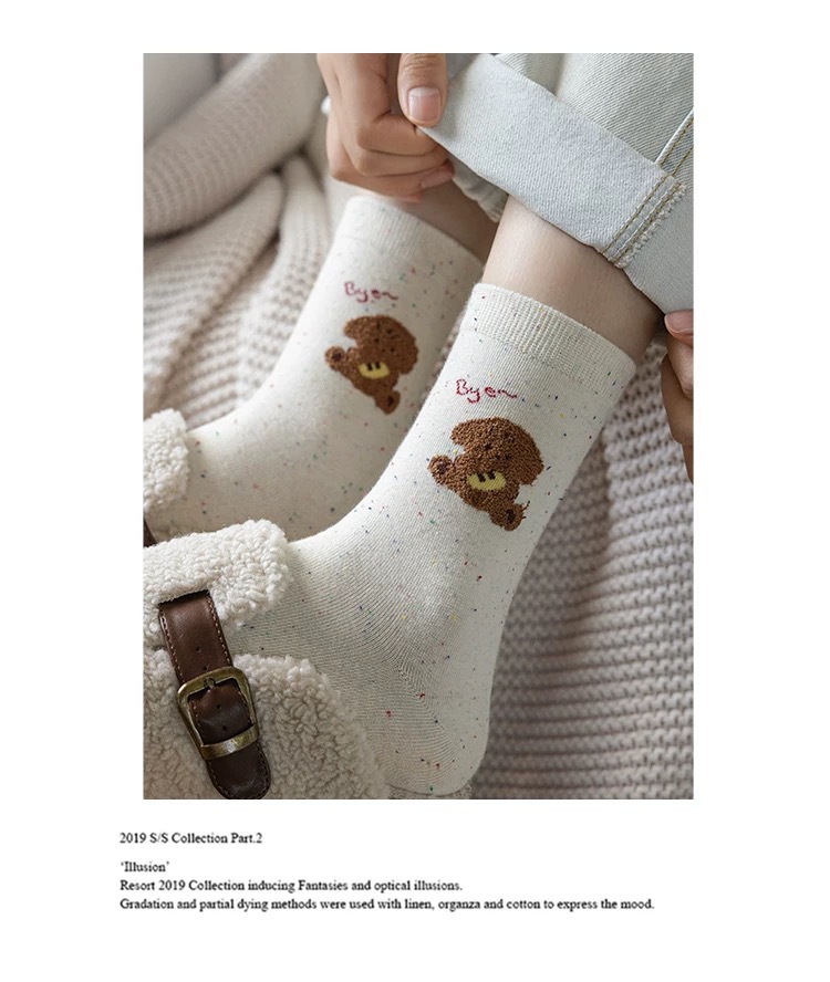 쌓인 원사 쌓인 양말 여름 귀여운 만화 강아지 여성 면 양말 한국식 일본식 얇은 뼈없는 미드 튜브 양말