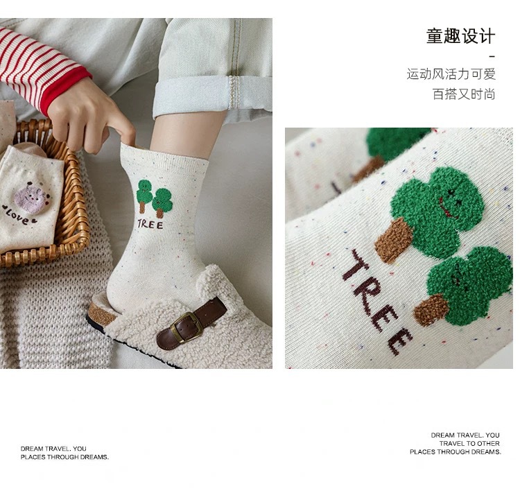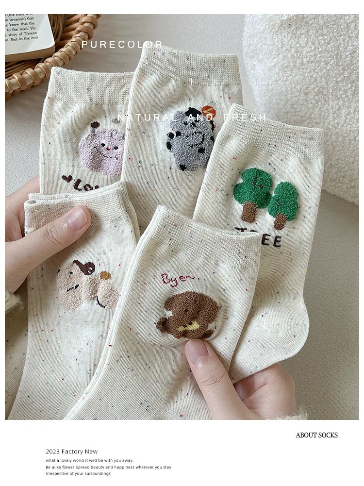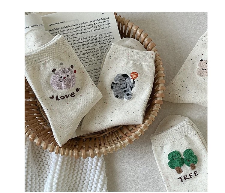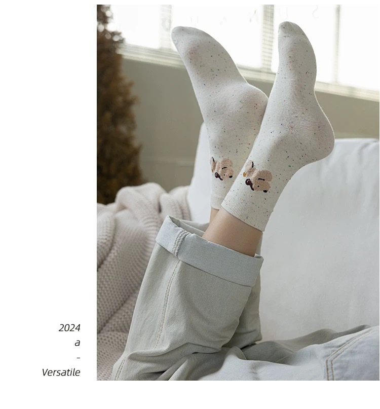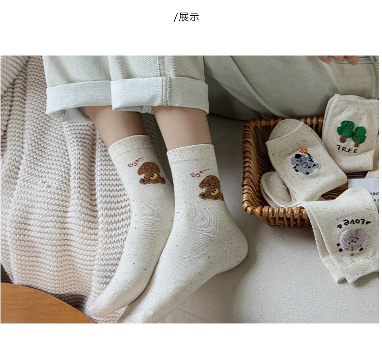 쌓인 원사 쌓인 양말 여름 귀여운 만화 강아지 여성 면 양말 한국식 일본식 얇은 뼈없는 미드 튜브 양말스토어 가기