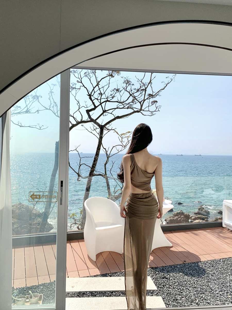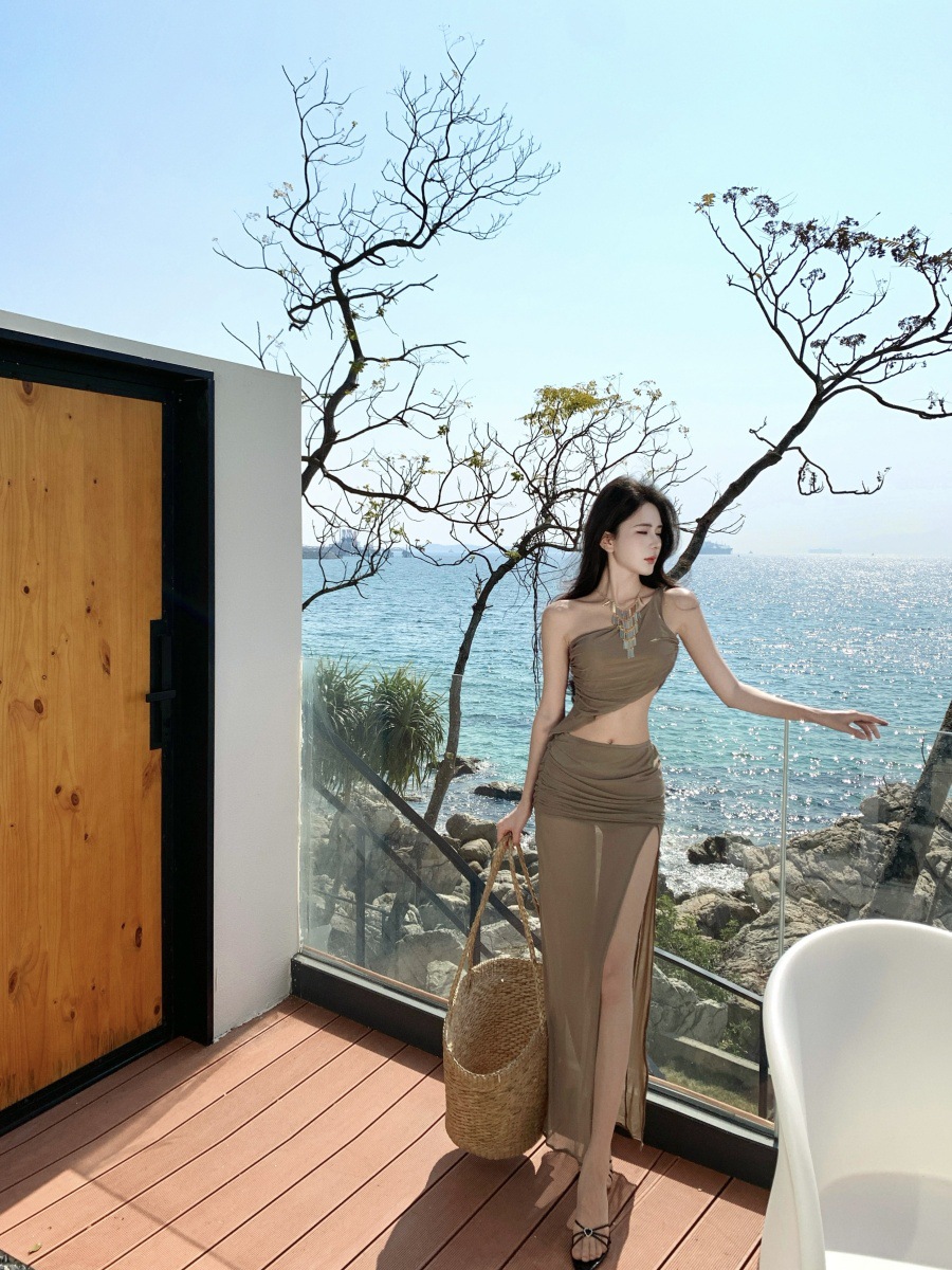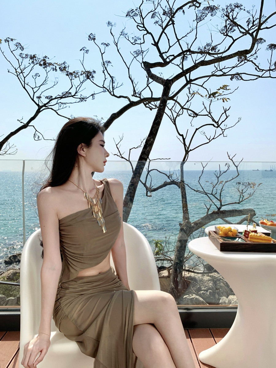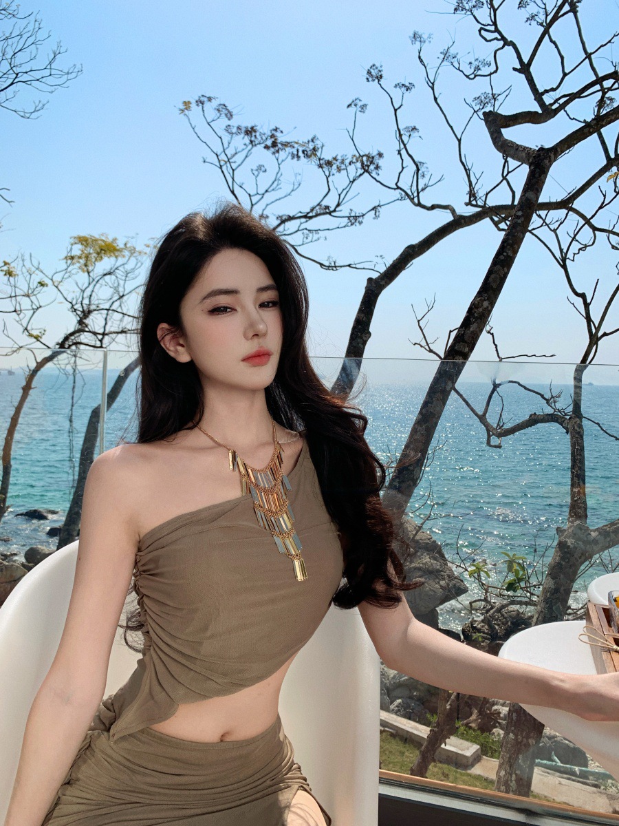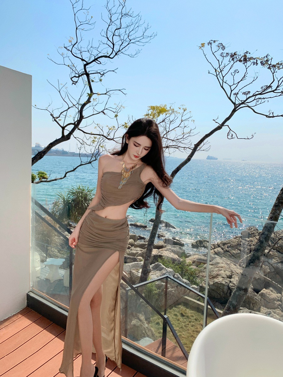 프랑스 스타일 여름 순수한 욕망 스파이스 소녀 휴가 착용 세트 여성용 민소매 스트랩리스 조끼 높은 허리 스플릿 스커트스토어 가기